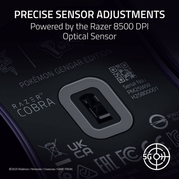 Hit the mark for precision and immersion with the Razer Cobra Pokémon Gengar Edition - a lightweight wired gaming mouse powered by Razer Chroma RGB. Armed with ultra durable switches and decked out with a gradient Chroma underglow, you'd never expect a mouse so small to pack such a big-game performance.
