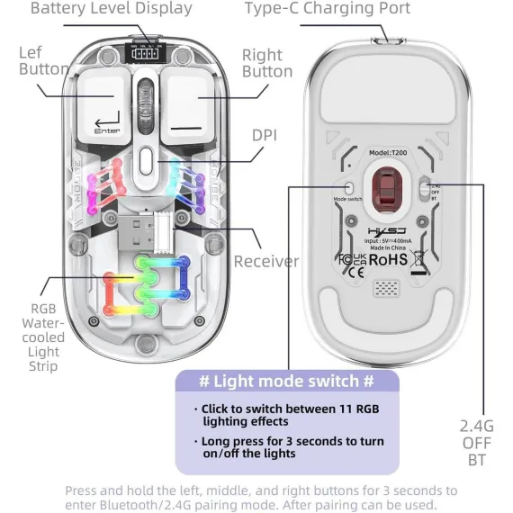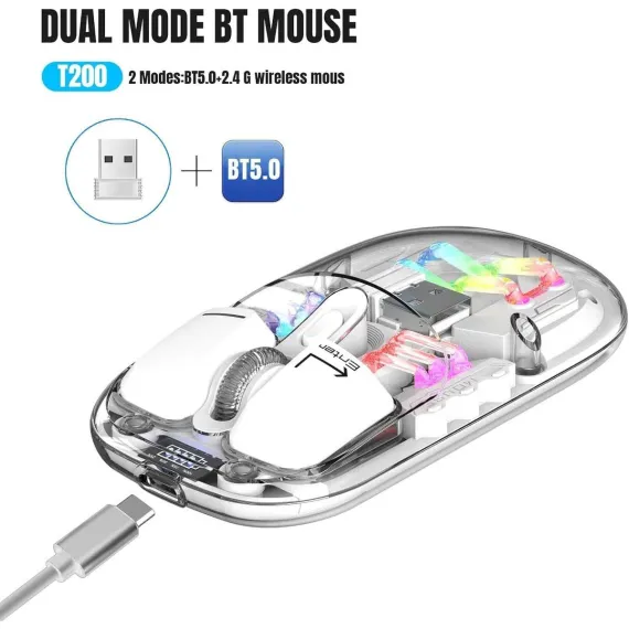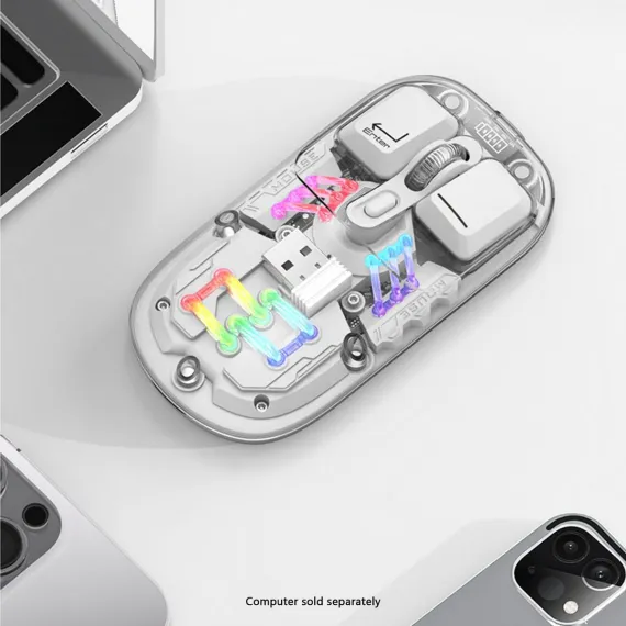 Practical and sleek, the Wireless Mouse delivers a transparent dual-mode design built for work, gaming, and everyday use. Its magnetic shell offers a modern aesthetic, while the adjustable DPI sensor ensures smooth, accurate tracking. With LED lighting, ergonomic comfort, and long-lasting battery life, this mouse provides reliable performance for any setup.