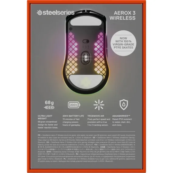 SteelSeries Aerox 3 Wireless Mouse: RGB Lighting, Slim Design, Laptop Accessory