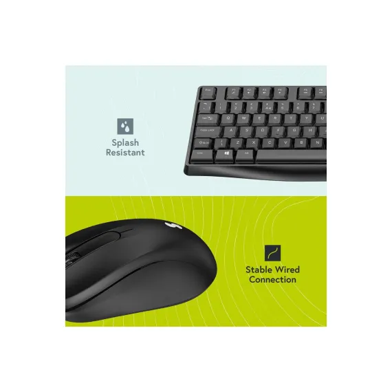 "Introducing our Wired Keyboard and Mouse Bundle, a blend of functionality and comfort. Compatible with Windows and powered via USB, it guarantees a stable connection for seamless use.