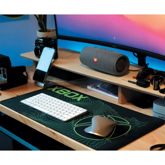Take your gaming to the next level with this Xbox Desk Mat. Serving as both a mouse pad and keyboard mat, this polyester and rubber combination features a slick surface with a grippy back for the ultimate in both comfort and control. Perfect for marathon gaming sessions, this extended mousepad means you won't run out of room whether you're editing video and photos or finishing off your enemy.