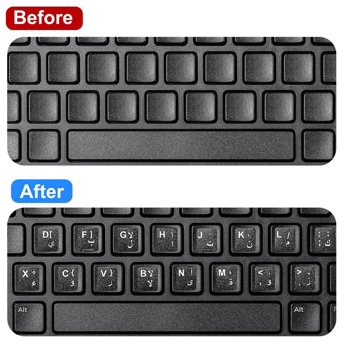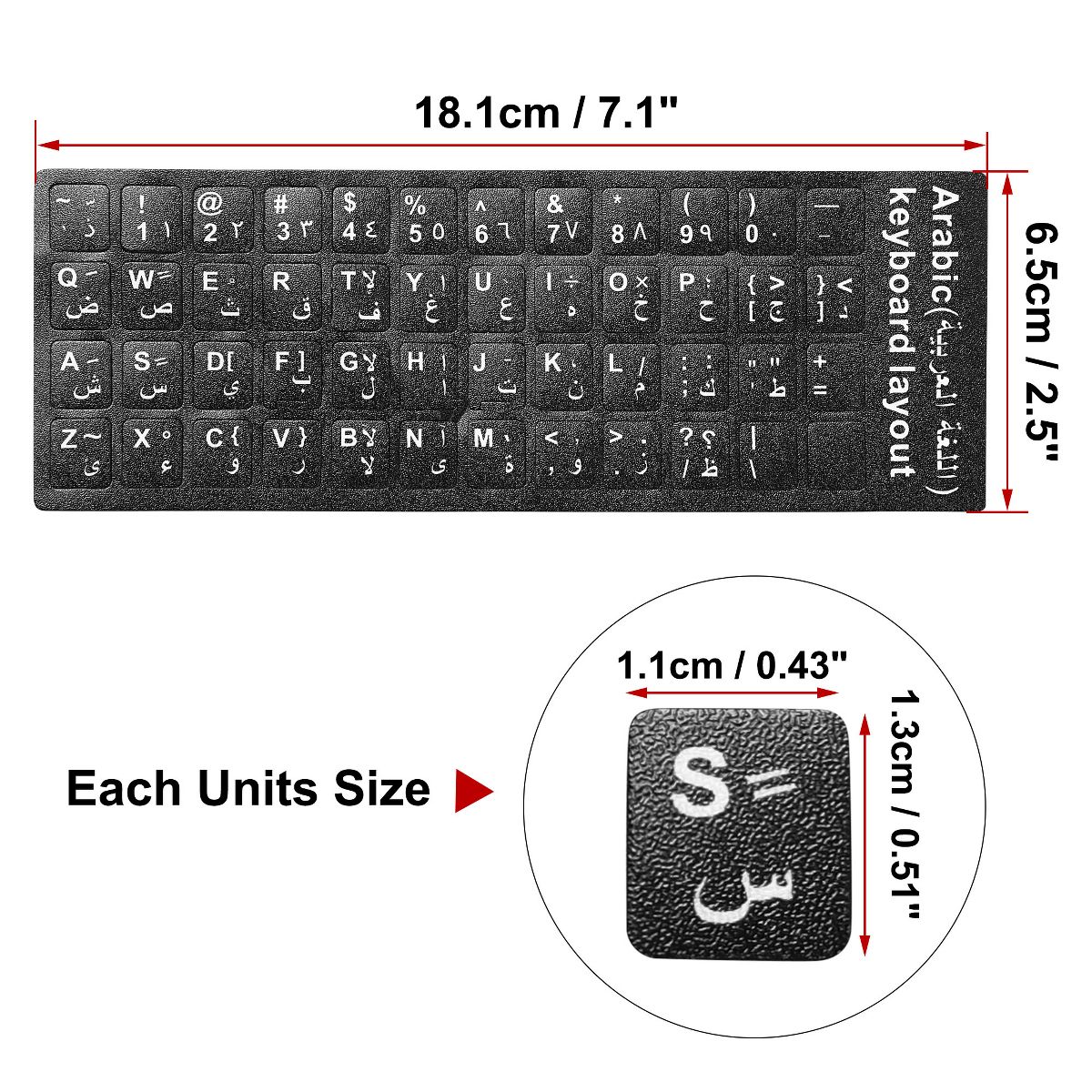 The Arabics keyboard stickers are specially designed for any keyboard and are perfectly fit for desktops, laptops, computers, and PCs. The tiny keyboard stickers can replace fad or worn letters, making your keyboard look new again. So you won't need to purchase a new keyboard at a considerable expense. Design: Arabics font keyboard sticker with white letters. The Arabics keyboard stickers can be easily applied and removed. A great way to update the look of your laptop or desktop keyboard is simply to apply the sticker to the relevant key. Specifications: Product Name: Keyboard Sticker Material: Plastic Main Color: Black, White Net Weight: 5g/0.1oz Sticker Size: 18.1 x 6.5cm/7.1"x 2.5"(L*W) Each small sticker: 1.1 x 1.3cm/0.43" x 0.51"(L*W) Package Content: 1 x Keyboard Sticker Notes: 1. Colors in the screen may not accurately reflect the true color due to individual computer monitors differences. 2. Due to the different measurement ways or tools, there may exist slight deviation (ranging from 1-3cm), hope you don't mind.