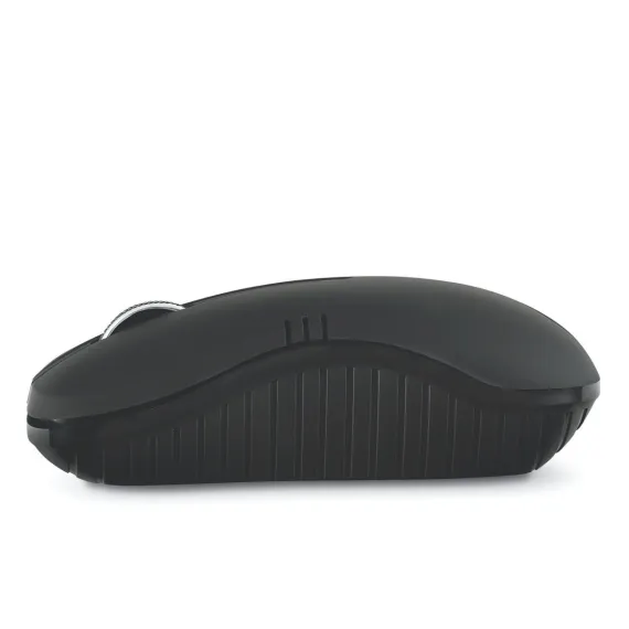 Plug and go! The Matte Black Commuter Series Wireless Notebook Optical Mouse from Verbatim is an ideal choice for notebook and desktop computer users. With a nano receiver that's small enough to plug into your computer and leave, this ambidextrous mouse offers 2.4-GHz wireless performance, which means no delays in cursor movements and fewer cords to pack. The receiver can be stored inside the battery compartment for safekeeping. _