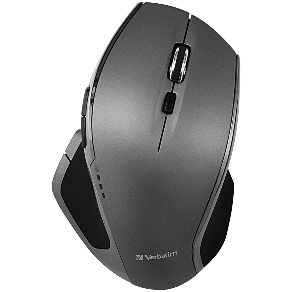 Verbatim® Cordless Deluxe Blue-LED Computer Mouse, Ergonomic, 8 Buttons, 2.4 GHz (Graphite) in Gray