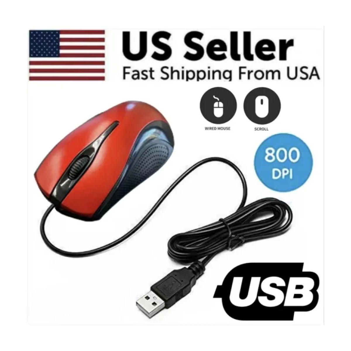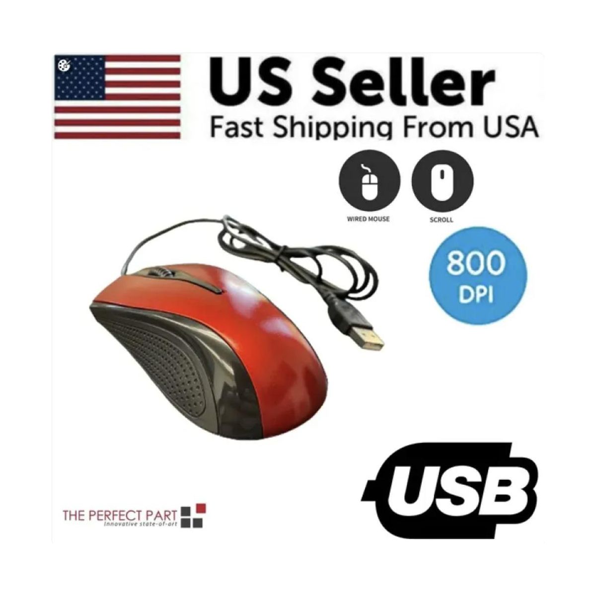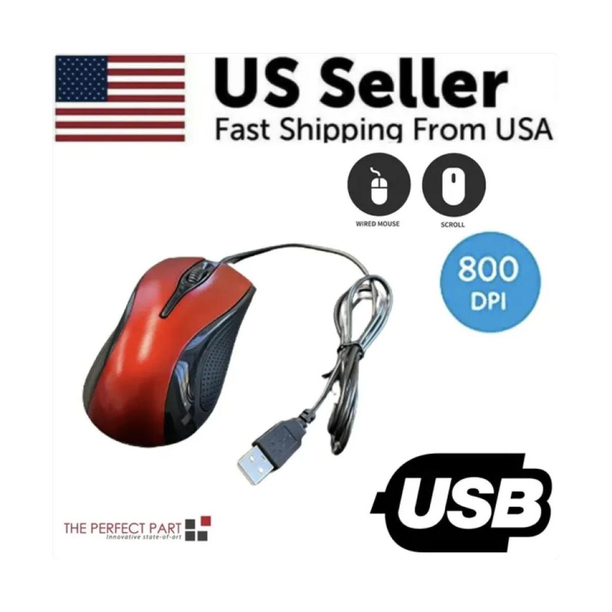 Wikineon USB 2.0 Optical Wired Mouse with Scroll Wheel - Red Mice Compatible with PC, Laptop, Notebook & Desktop: Reliable Precision for Daily Use