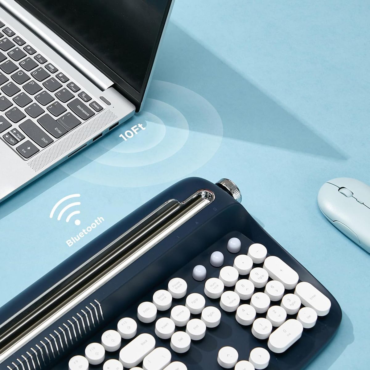 Wikineon Wireless Typewriter Keyboard, Bluetooth Connection, Cute Retro Aesthetic Design with Integrated Stand for Tablet Phone PC and Win/Mac/Android