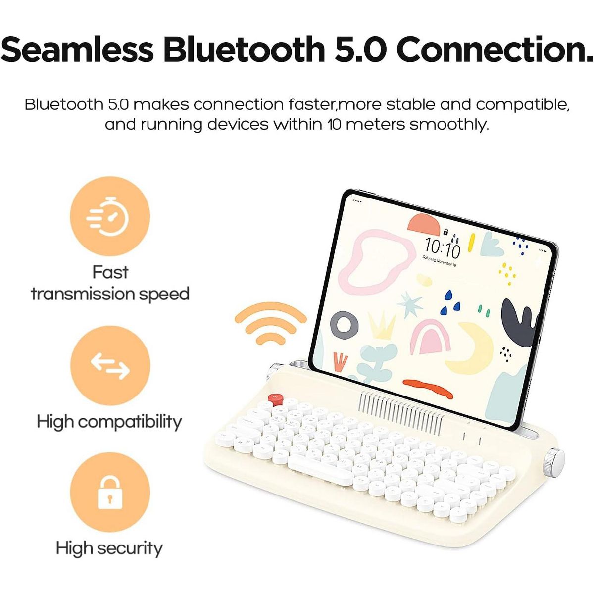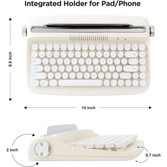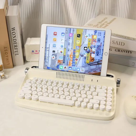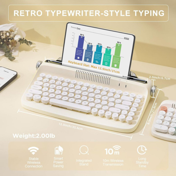 Wikineon Wireless Typewriter Keyboard, Bluetooth Connection, Cute Retro Aesthetic Design with Integrated Stand for Tablet Phone PC and Win/Mac/Android