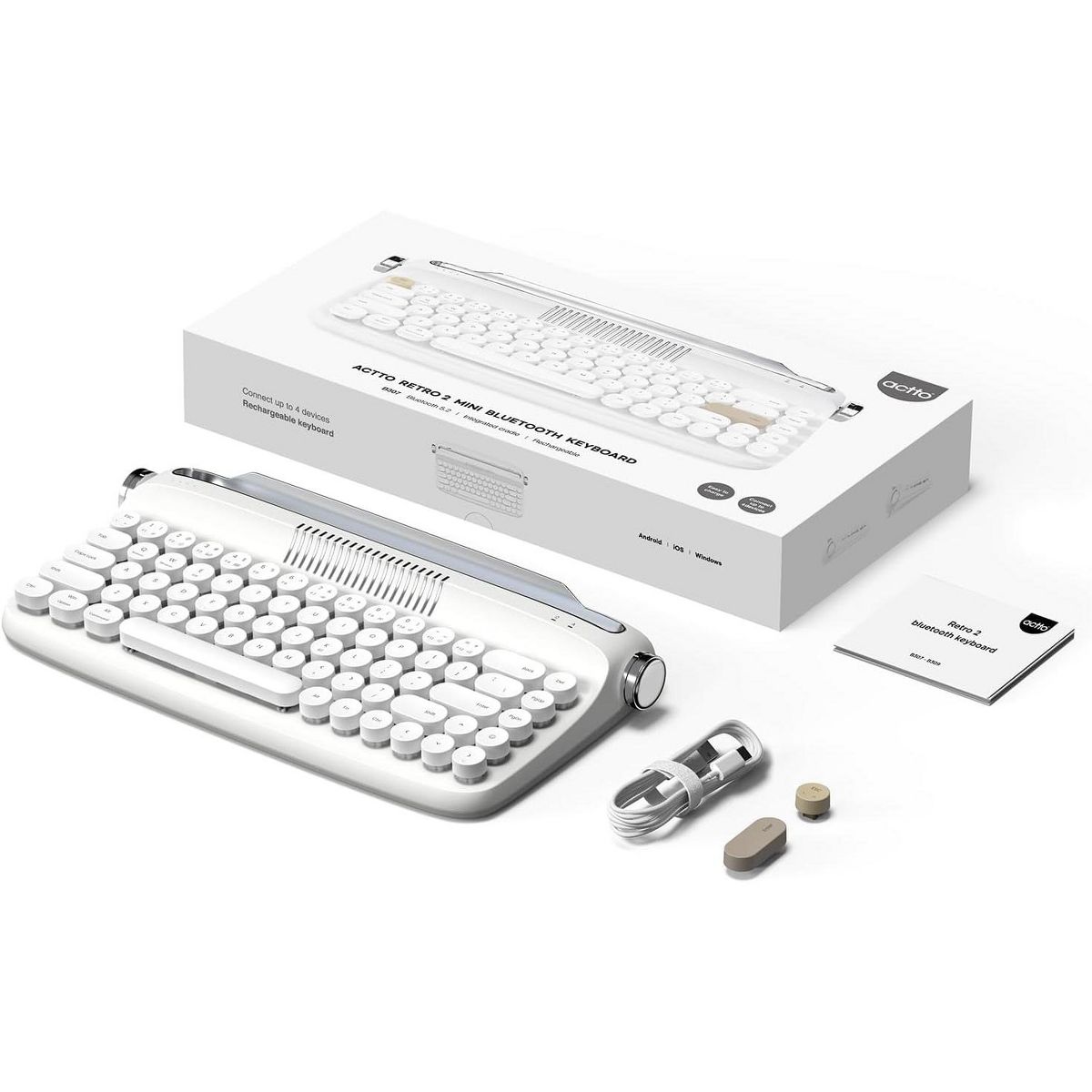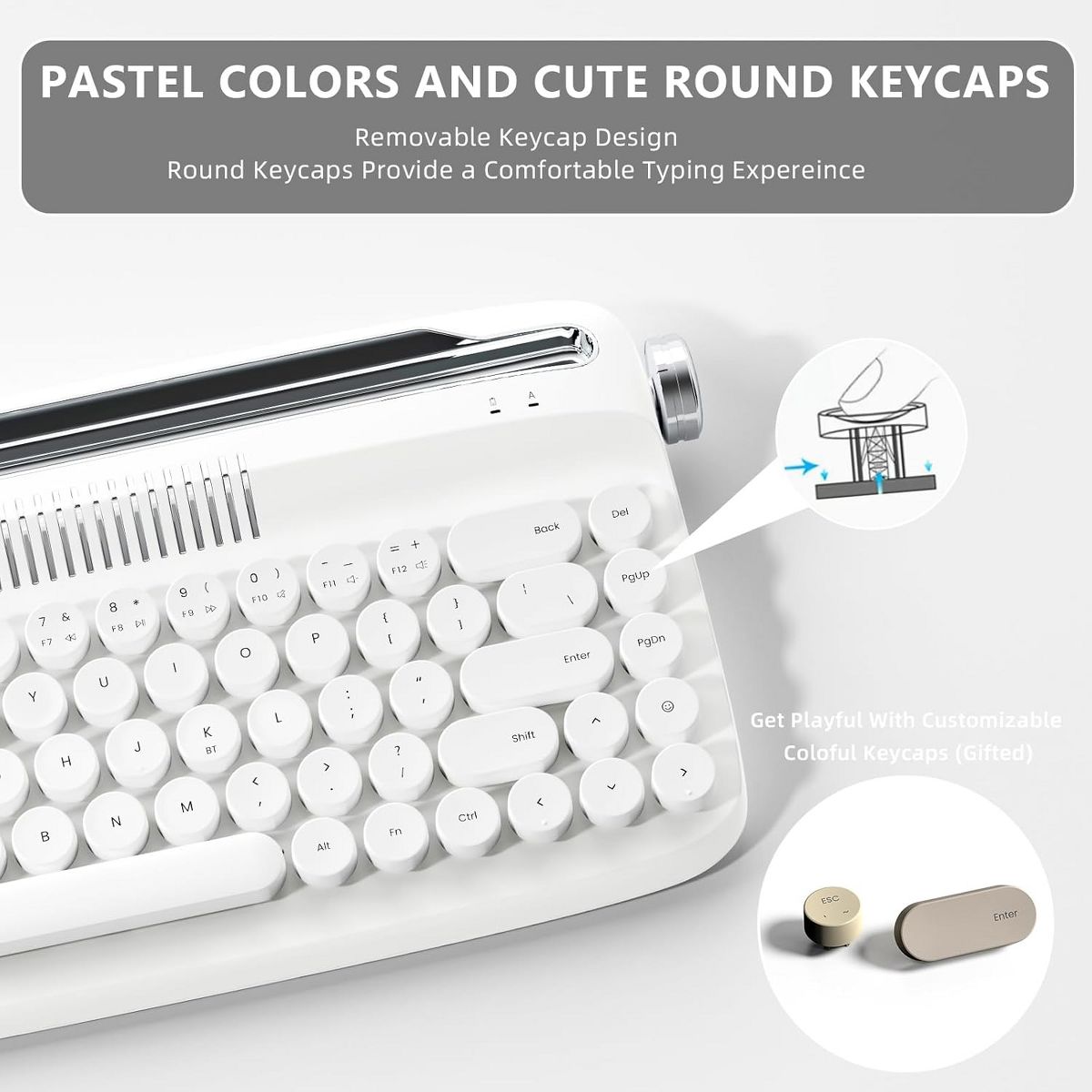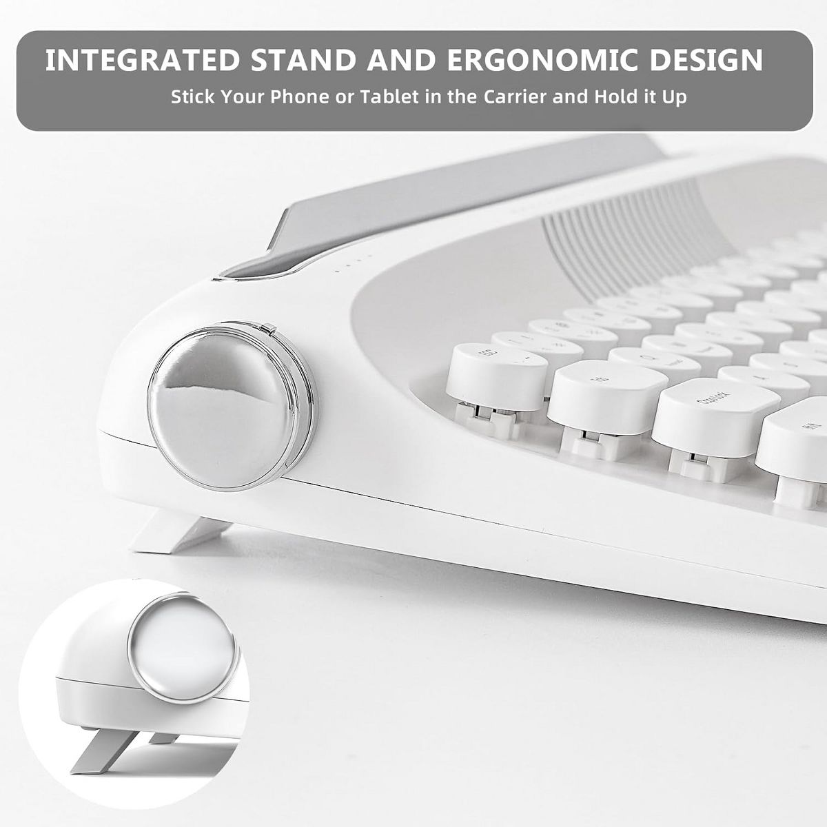 Wire/Wireless Typewriter Keyboard, USB-C/Bluetooth Connection, Cute Retro Aesthetic Design with Integrated Stand for Tablet, Phone, Win/Mac/Android