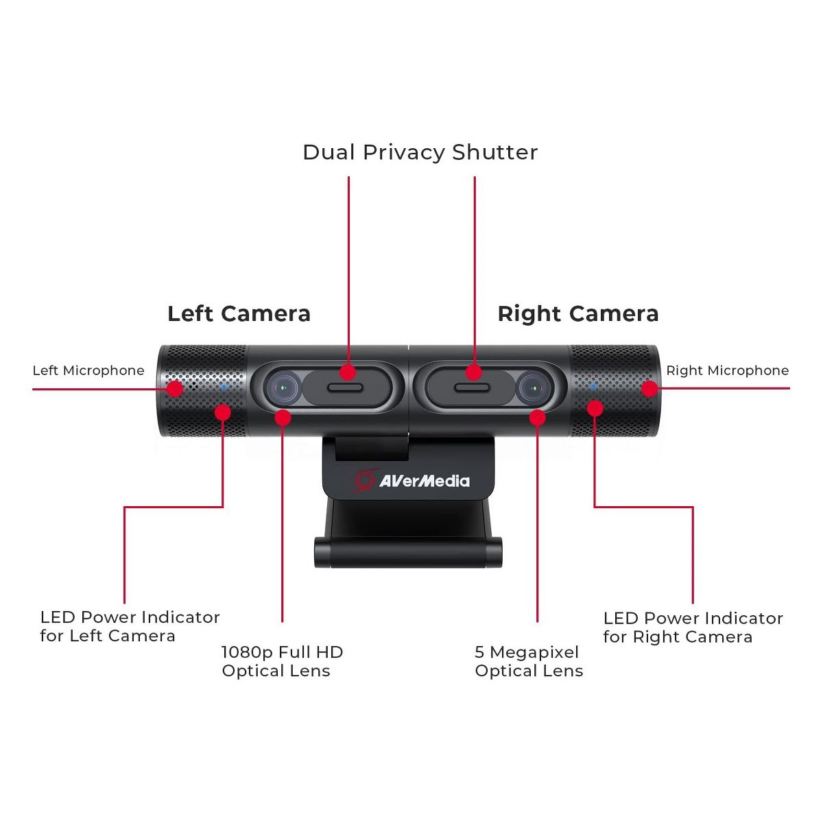 AVerMedia DualCam PW313D Video Conferencing Camera 5MP 30fps Black