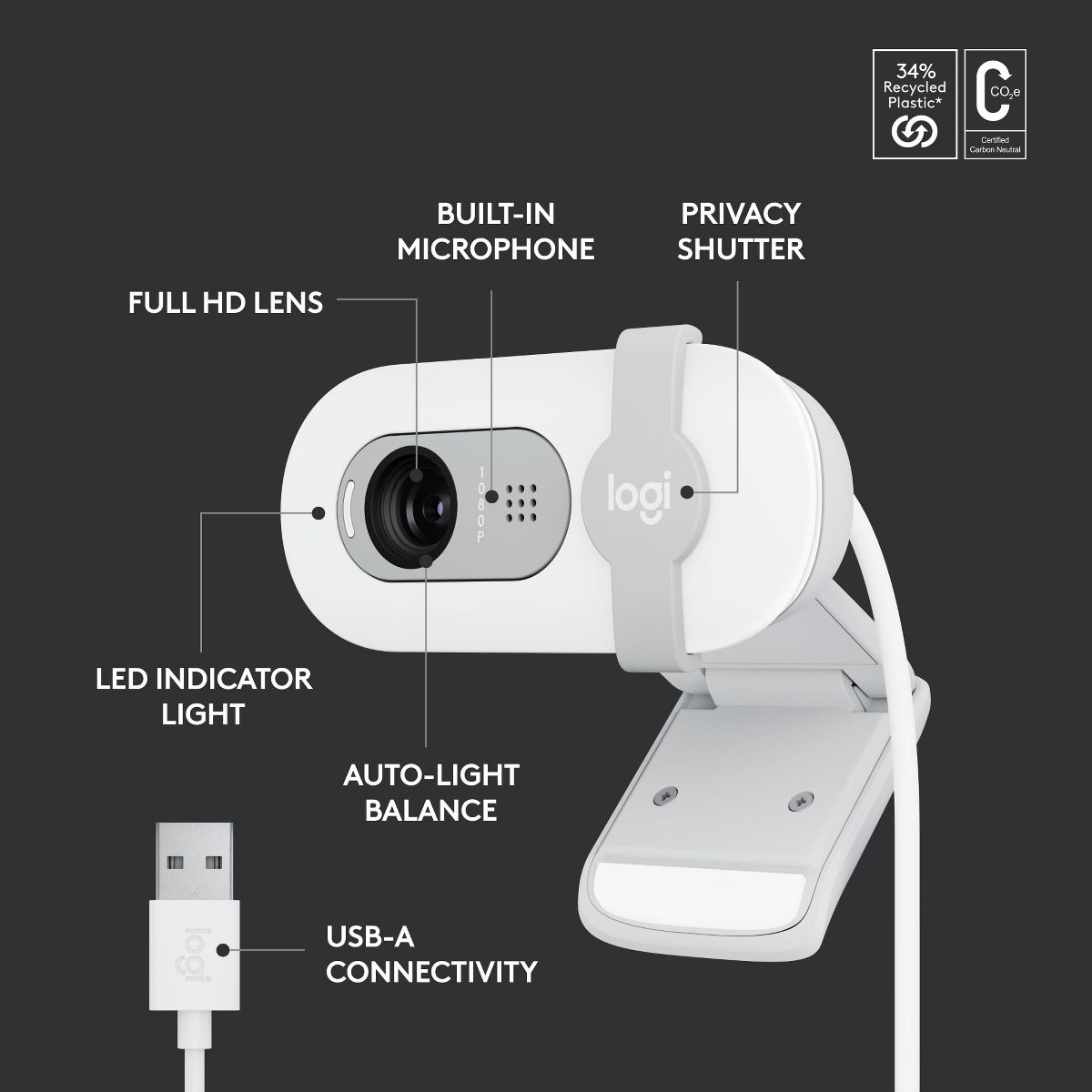 Logitech BRIO 100 Webcam 2 Megapixel Off White USB Type A 1 Pack