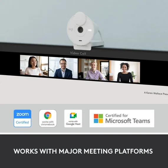 Say hello to better video meetings. Place Brio 300 at your best angle for an eye-to-eye connection. Look natural thanks to 1080p resolution and auto light correction for low-light situations. A noise-reducing mic suppresses background noise so others can hear you clearly. Spin the easy-to-use privacy shutter to cover the lens between calls. Brio 300 is certified for Microsoft Teams, Google Meet, and Zoom, so you can enjoy hassle-free meetings. Add a dash of personality to your workspace with a modern shape and a subtly speckled design made from at least 48% recycled plastic. (3) (1) Download free Logi Tune for a customized experience. Logi Tune app currently supports headset voice prompts in the following languages: English, French, German, Italian, Spanish, and Portuguese. (2) Logi Tune not available for Chrome OS (3) Webcam plastic content may vary by color. Excludes Electronic (EE) Components, cables, and packaging. 62% for Graphite and Black, 48% for Off-white and Rose.