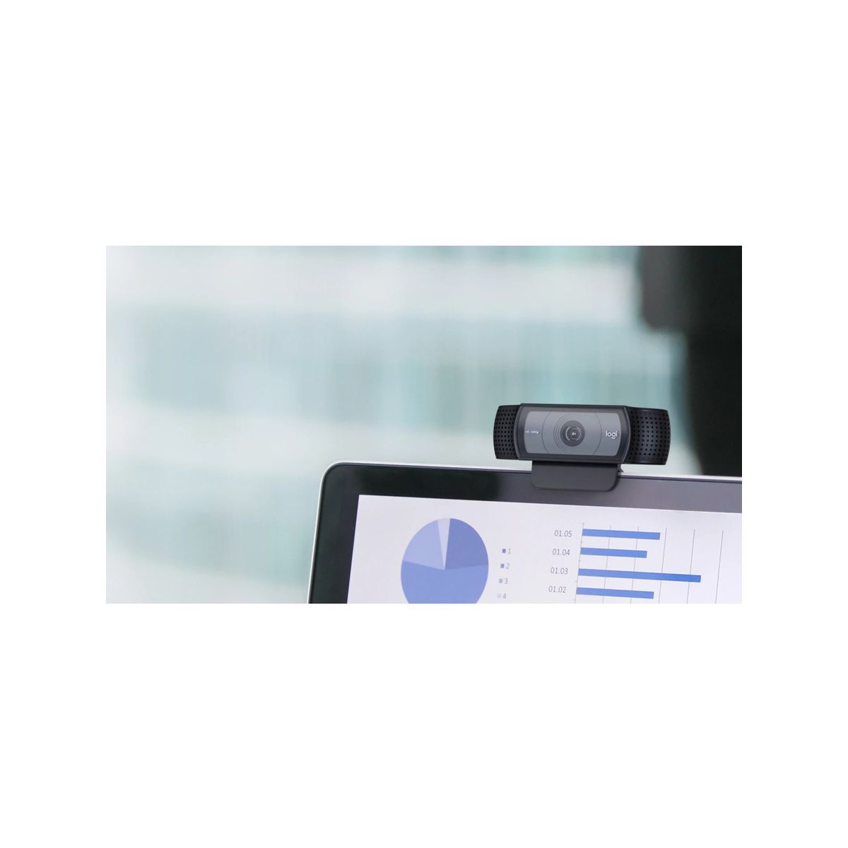 LOOK GOOD. EVERYWHERE. C920e is a work-from-anywhere HD 1080p webcam that surpasses the video and sound quality provided by most laptops. Step up to professional-quality video collaboration at a price point ideal for deployment at scale. YOU. PERFECTLY FRAMED. C920e is ideal for displaying individuals in a well-balanced frame. The fixed 78 field of view captures a "just-right" view of the user and their environment while also providing sufficient room to visually share projects and other items of interest. ACTIVATE MICS WHENEVER NEEDED C920e includes dual integrated omnidirectional mics that can be easily enabled with the Logi Tune Desktop app. When activated, the mics are optimized to clearly capture audio from up to one meter away. Keep Sharp, Automatically Built-in HD autofocus ensures you're seen clearly throughout your video calls. Working in tandem with automatic light correction, C920e delivers optics that help you look good in all your video meetings. TAKE CONTROL WITH TUNE DESKTOP The Logi Tune Desktop app simplifies personal device control and customization on select models, including C920e. The mini app works unobtrusively on your screen for uninterrupted video collaboration, including activation of the C920e dual integrated mics, zoom control, color adjustment, and easy download of firmware updates. VERSATILE MOUNTING OPTIONS Mount the webcam wherever it works best: screen, notebook, or tabletop. C920e is designed with a sturdy, adjustable clip that makes it easy to mount on any laptop or external monitor. Integrated tripod threads provide extra versatility to mount the webcam on a tabletop or full-size tripod as well Tripod not included. ATTACHABLE PRIVACY SHADE C920e features an attachable privacy screen that flips up and down to cover or expose the lens. A simple glance at the physical cover confirms for sure if the lens is able to see into your space or not. BUSINESS READY BY DESIGN C920e works with all popular video calling applications, including BlueJeans, Cisco Webex, Fuze, Google Meet, GoToMeeting, Lifesize Cloud, Microsoft Teams, Pexip, RingCentral Video, Skype for Business, Vidyo, and Zoom to ensure compatibility and seamless integration in the workplace.