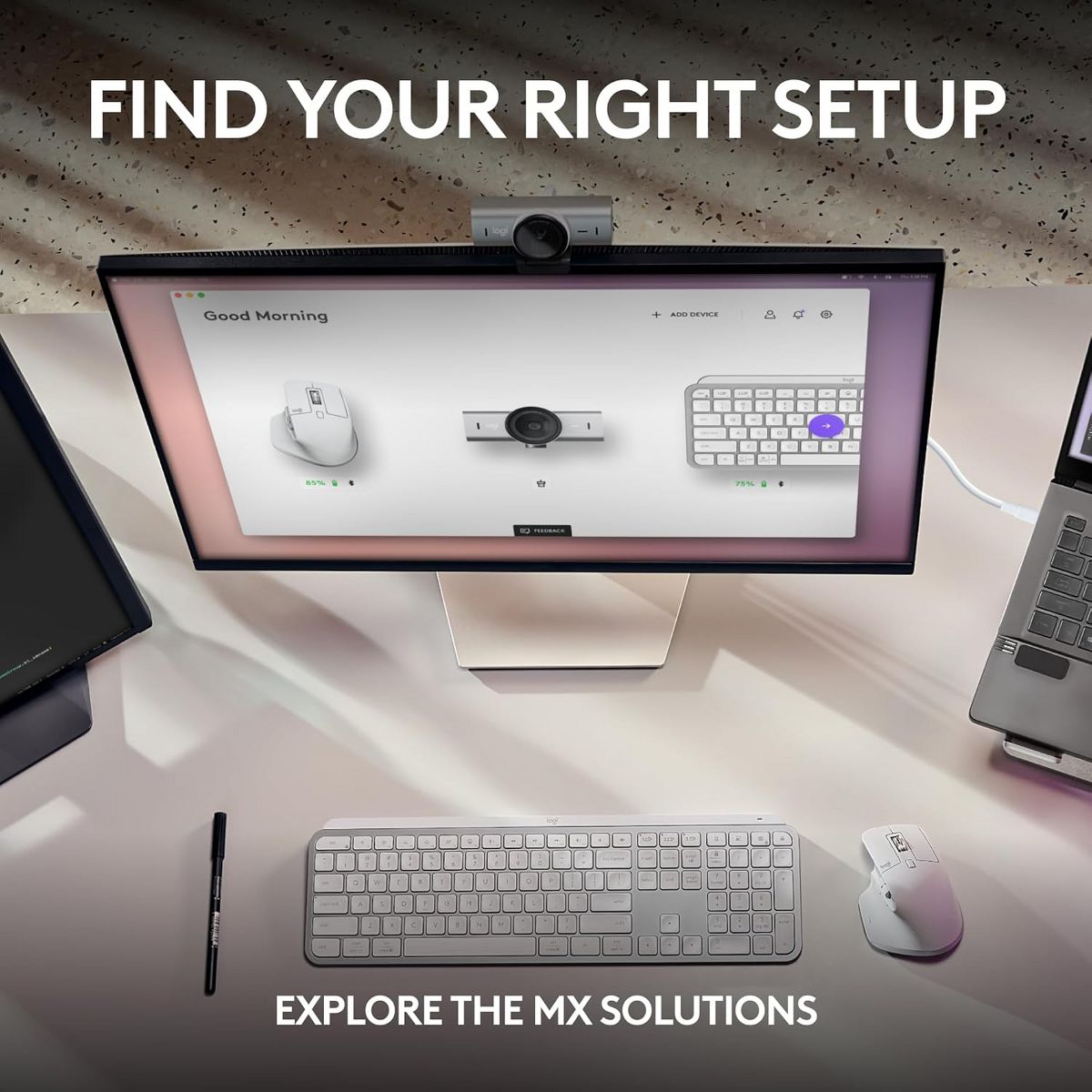 Meet, stream, master with MX Brio's sharp ultra HD 4k resolution video. With 2x better face visibility and 2x finer image details in difficult light, AI enhancements, a Logi-designed lens, 70% bigger pixels and our largest webcam sensor yet. Use Fine Controls to adjust lighting, white balance with ISO, Shutter Speed, Temperature, Tint and Vibrance. Be heard clearly with dual omni-directional mics with noise-reducing technology that suppresses background sound. Share your physical work and notes on video calls by tilting the camera down in Show Mode.