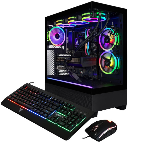 Built in the USA, this CLX Set Gaming Desktop Computer is a meticulously crafted powerhouse designed to redefine your gaming or even designing experience. At its core, a new 9000-Series liquid-cooled AMD Ryzen 7 9700X 3.8GHz 8-Core processor that delivers lightning-fast speeds and unrivaled performance, effortlessly handling the most demanding games and applications due to a new high-performance "Zen 5" multi-chip architecture. Pairing that performance processor with the included NVIDIA 40-Series GeForce RTX 4070 SUPER 12GB GDDR6X graphics card, utilizing its Ada Lovelace architecture, 4th Gen Tensor Cores for AI-powered graphics, and frame rate multiplying NVIDIA DLSS 3, this system unveils breathtaking visuals, transforming every game into a stunning visual spectacle. Want to experience 4K or Virtual-Reality worlds? Get this stunning PC that's been built in the spectacular XT View satin black, mid-tower chassis and experience worlds of unparalleled realism with lifelike details, vibrant colors, and smooth, stutter-free gameplay. Beefed-up with a substantial 32GB of DDR5 high speed 5600MHz memory, this CLX Set gamer effortlessly handles multitasking, allowing you to switch between games, streaming, and other applications without compromise. Need even more than that? You can upgrade to a max 256GB of memory. Launch titles in seconds with the blazing-fast 1TB NVMe M.2 Solid-State Drive, eliminating frustrating load times and ensuring you spend more time playing and less time waiting. Stay connected to the action with either the 2.5Gigabit high-speed wired or WiFi 6E wireless networking, providing reliable and consistent connectivity for online gaming and streaming. Precision crafted by Gamers for Gamers with a relentless pursuit of excellence, this CLX Set is more than just a PC; it's a precision-engineered masterpiece that delivers an amazing AAA title gaming experience. Evoke the Gods with your "Lord of Chaos" CLX Set gaming PC today.
