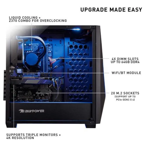 I purchased this for a client, largely due to the bitcoin-driven run-up in retail graphics card prices. I would typically have built a custom gaming rig, but buying this pre-built was actually cheaper with a few extra bells and whistles like the whiz-bang LED lighting. The Good: Fast...really fast. The 8th generation i7 6-core processor, 16GB of RAM, SSD and conventional hard drive, Asus GTX 1070 with 8GB DDR5 and factory installed liquid cooling check all the right boxes for some serious, out-of-the-box performance and over-clocking capabilities if so desired. The case is fairly sturdy with solid, thick tempered glass sides to show off the spiffy RGB LED lighting inside, and the red LED lit accent stripe on the front adds an extra bit of interest. Power switch, USB and audio ports are on the top and easily accessible. Then it gets a bit weird. Inside this massive case, there are surprisingly minimal upgrade capabilities. In the apparent minimalist goal to provide a squeaky clean view through the glass side panels, there are only mounting points for two SSDs in the main compartment, and two HDDs hidden behind the motherboard plane and accessible from the right side. Unfortunately, adding a second hard drive also requires an extension SATA power cable since the existing one does not have enough space between connectors to reach both drives with the vertical mounting scheme. You would have thought they would have discovered and corrected this oversight, but then this computer was never really designed for much expansion. In keeping with current gaming case design trends, there are no external drive bays, so adding an optical drive or other front panel accessories isnt an option. The not-so-good: After setting up the computer and adding the clients old data drive as a second HDD (and extension SATA power cable due to aforementioned issue), I found on delivery and in-home setup that no WiFi adapter was identified. Nothing showed up under the Network settings and nothing in Device Manager. I first contacted Amazon, whos only response was to start the return process. This wasnt really an option since they were then sold out, and I had just spent several hours configuring the computer with my clients personal information and apps, so I contacted iBuypower. Tech support (and I use the term loosely) never bothered to try to assist me with troubleshooting, and simply suggested that I send this monster back to them for evaluation, sending me an RMA. Again, that would mean spending more hours removing client data and hard drive, then repeating setup again when computer was returned. The concept that I didnt feel I should have to spend several hundred dollars of unbillable time for their mistake was apparently beyond the grasp of the "support" person. I asked if they could tell me where to look for the adapter inside the case and they couldnt. I even offered to send them a screen shot of Device Manager showing no WiFi adapter connected and photos of the interior, but they insisted the only way they could (or would) resolve the issue was to send the entire computer back to them. Since the client didnt need WiFi initially, I left things alone and attempted to find additional information, which was in scarce supply. The clients situation changed and they needed to move the computer to a room that required working WiFi. Another unbillable visit to loan him a USB WiFi adapter, and further investigate inside the computer to see if I could find anything I had previously missed. This time, I found the WiFi adapter hidden up near the top of the case, a Realtek micro USB attached to a cable that was supposed to have been connected to a USB port on the motherboard, operative word being "supposed to." The cable had never been connected in factory assembly, nor apparently had the computer gone through any kind of QC to confirm all components were installed and functioning correctly. I reconnected the USB cable and the adapter showed up. Unfortunately, the WiFi adapter included with this system seems fairly wimpy for a full-on gaming rig. Connection speed to their Netgear R6300v2 router on 5G yielded only about 345 MB, and Ookla Speedtest app showed only 88 Mbps downstream. For comparison I plugged in an external Netgear A2600 USB adapter and connection speed went up to 565 GB and Speedtest yielded 289 Mbps downstream. Maybe its the fact that the WiFi adapter is inside the metal case and thats shielding it, but performance is definitely wanting on this front. Conclusion: Lots of bang for the buck with some sexy RGB lighting bling thrown in for sex appeal. Minimal expansion capabilities, and no external front bays. Quality control is lacking and tech support could be improved. RGB lighting is cool, but need to have remote fairly close to change and was not compatible with MSI motherboard or Asus video card standards, so not able to incorporate those components in an overall lighting scheme. Wimpy included WiFi adpater will likely not be sufficient for any serious online gaming.