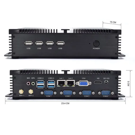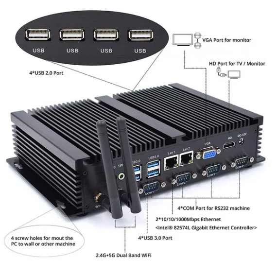 I got the model with 8 GB of RAM, a 128 GB SSD, and a Dual Core i5 CPU. It has a 1.8 GHz clock speed (instead of the 1.7 GHz advertised - BONUS!), with a maximum turbo boost of 2.6 GHz. THE GOOD: There is so much to like about this little guy, its hard to know where to start. I guess Ill start with the speed, its got some pep to it. I have other tiny PCs that are... OK. In the interest of making them cheap and low power, they have a Celeron or Atom CPU, 4 GB of RAM, and 64 GB SSDs in them. For the uses I put them to, they are fine, but they are slow to start up and they feel like 15-year old machines when setting them up - quite sluggish by todays standards. Not so with this thing! Out of the box, its boot time (pressing the power button to ready to use) was under 19 seconds. Office applications (word processing, spreadsheets, etc.) run fast, web browsing and media playback are smooth. The next thing I like is the passive cooling. This is, as advertised, a fanless computer. In fact, the factory configuration has no moving parts at all, so its dead silent - literally no sound from it at all. This makes it ideal for use as a media center PC. The fact that it draws no air through it with a fan also makes it a great computer to put in industrial settings where dust can cause real problems for computers. Other tiny PCs I have makes this boast, but being in a smooth plastic case, they tends to overheat and shut down in self preservation, which is really annoying. This Kingdel computer is awesome as a fanless PC because of its rather unique, and very efficient case design. Instead of flat plastic (which I grant does look nice), it has an aluminum case with fins across the top and the 2 smaller sides. The CPU (at the very least) is attached to the inside of this, making the case a large heat sink that passively cools the computer by radiating heat to the air around it. Unlike the ineffective design of my other fanless PCs, this works extremely well - my home stereo gets hotter to the touch than this computer does. I ran a stress test on it for over 12 hours , yet the temperature of the warmest point on the case only reached 95 degrees Fahrenheit. My test environment had an ambient temperature of about 74-75 degrees. The computer does have a rather industrial look because of the heat sink case, but I dont find it unattractive by any means. It reminds me of a car stereo amplifier, like youd see mounted in your trunk with the sub-woofer. The next thing I like about this is connectivity. This computer has the port count of computers costing way more and of far bigger physical size. The rear of the unit has 2 HDMI outputs (its able to send a 4k signal), 4 USB 3.0 ports, dual WiFi antenna jacks (which appears to support both 2.4 GHz and 5 GHz), 2 Ethernet jacks, 4 RS232 COM ports (still quite common in industrial settings) and the 12-volt power input. The front panel has 4 USB 2.0 ports and the power button / LED. I havent looked to see if it has Blutooth or not. The computer comes with the cables and mounting screws to add an additional hard drive or SSD for storage. It has space inside for a laptop drive of either type. The documentation says it supports drives up to 2 TB. Access to install another drive is via 4 screws on the bottom of the PC (you do have to break a manufacture date label to get to one of them). It also came with a decent HDMI cable - Id estimate 6 feet long and flat. It supports 4k and Ethernet. Lastly, is power usage. I put a Watt meter inline with the power supply, and while running the stress test, it was using under 20 Watts. In fairness, I tested the PC in its out-of-the-box configuration, with no added drives, internal or external. The power supply is rated for a maximum of 60 Watts, so adding an internal drive and loading the USB ports with bus-powered devices shouldnt be a problem. THE BAD: There really isnt a lot to say here. The power supply is external - it looks identical to many laptop power supplies. I dont find this particularly bad, but some people might. I see it as a good thing from the perspective that it helps the PC run cooler. Having a degree and background in electronics, I know that power supplies generate heat, so this design helps reduce heat inside the computer. I do wish that the distribution of the USB ports was different. It would be nice to have a couple of USB 3.0 ports on the front and a couple of USB 2.0 ports in the back, instead of each clumped together on one side or the other, but the thing is so small that its really not hard to reach them either way. This is a very minor inconvenience. The computer came with a "Kingdel" user already set up, without a password, and a customized set of icons already on the desktop. I dont like this for a number of reasons. I dont like Windows 10s default settings that send Microsoft WAY more information than is any of their business. I dont like not having a password securing the computer. It means that I dont know what else is loaded that I dont want / need. This is all fixable since I am an IT professional, but its annoying. I also dislike that it doesnt come with a way to make media to completely wipe and reinstall Windows and required drivers. I suspect that all the drivers needed are standard drivers that come in Windows, judging by the list of hardware Ive looked at (Intel networking and video, etc.), but I dont know that for sure. Im going to take an image of the hard drive before I move on to testing with other OSes. I recommend that this be done as a backup in any case so you can reinstall Windows if (when) the SSD dies - all things electronic eventually do. This is not a "gaming" computer. Oh, sure, itll play Minecraft and other games that dont need lots of "umph", but dont expect to play any serious, high-end games on it. This is intended to be used as a controller for industrial machinery, a media center computer to watch Netflix, Amazon Prime, Hulu, etc. on, an office PC, that sort of thing. It wo