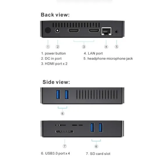 M2 Mini PC Licence Windows 10 8GB RAM LPDDR4 128GB SSD M.2 Intel Apollo Lake Pentium Silver J4205 Multimedia Office Desktop Computer HDMI 4K Display VESA Mount, Dual WiFi
