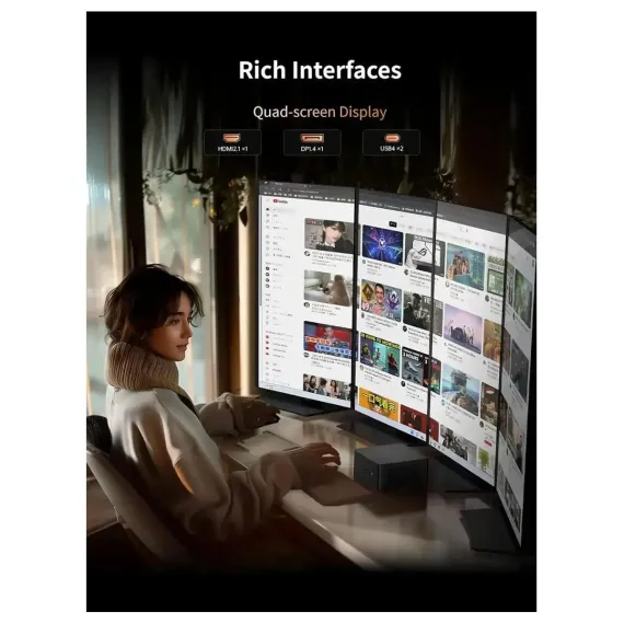 Experience unparalleled performance with the MINISFORUM UM890 Pro Mini Desktop PC, featuring the cutting-edge AMD Ryzen 9 8945HS Processor (8 cores, 16 threads) built on a 4nm process with an integrated AI engine. Boasting a 5.2GHz max boost clock, this mini powerhouse delivers lightning-fast speeds for demanding workloads, multitasking, and creative tasks.