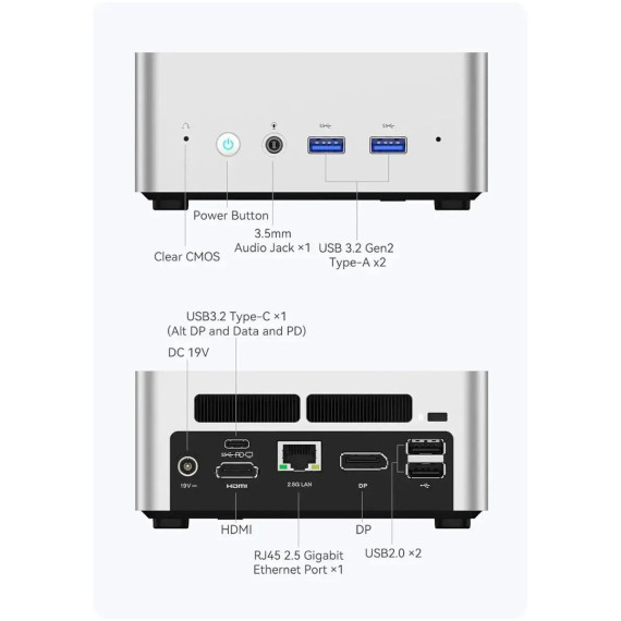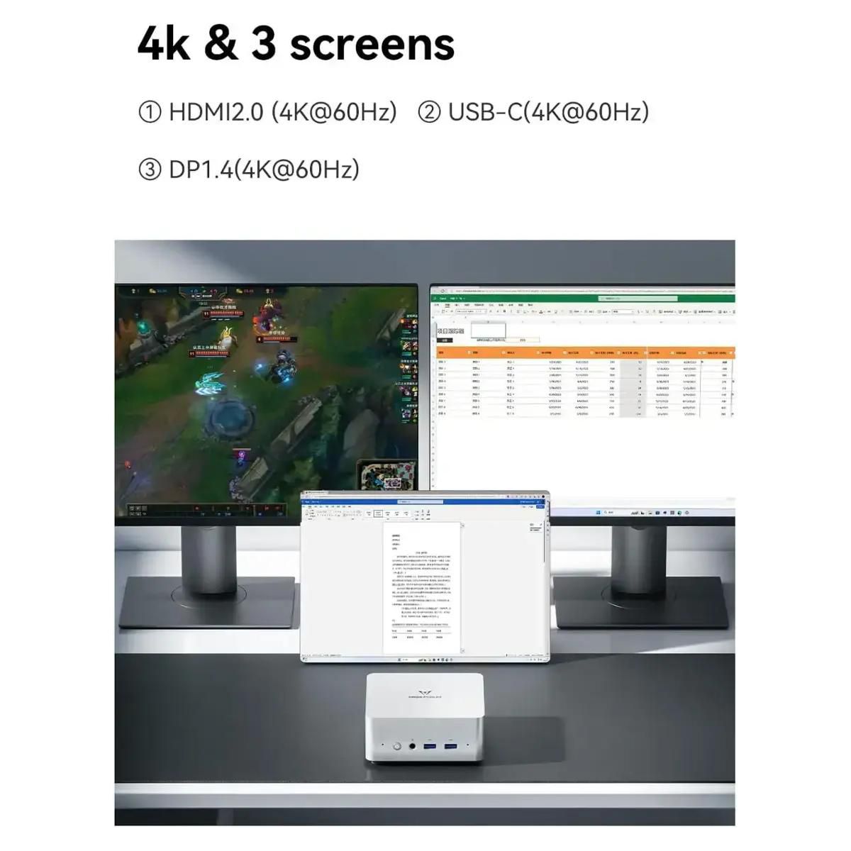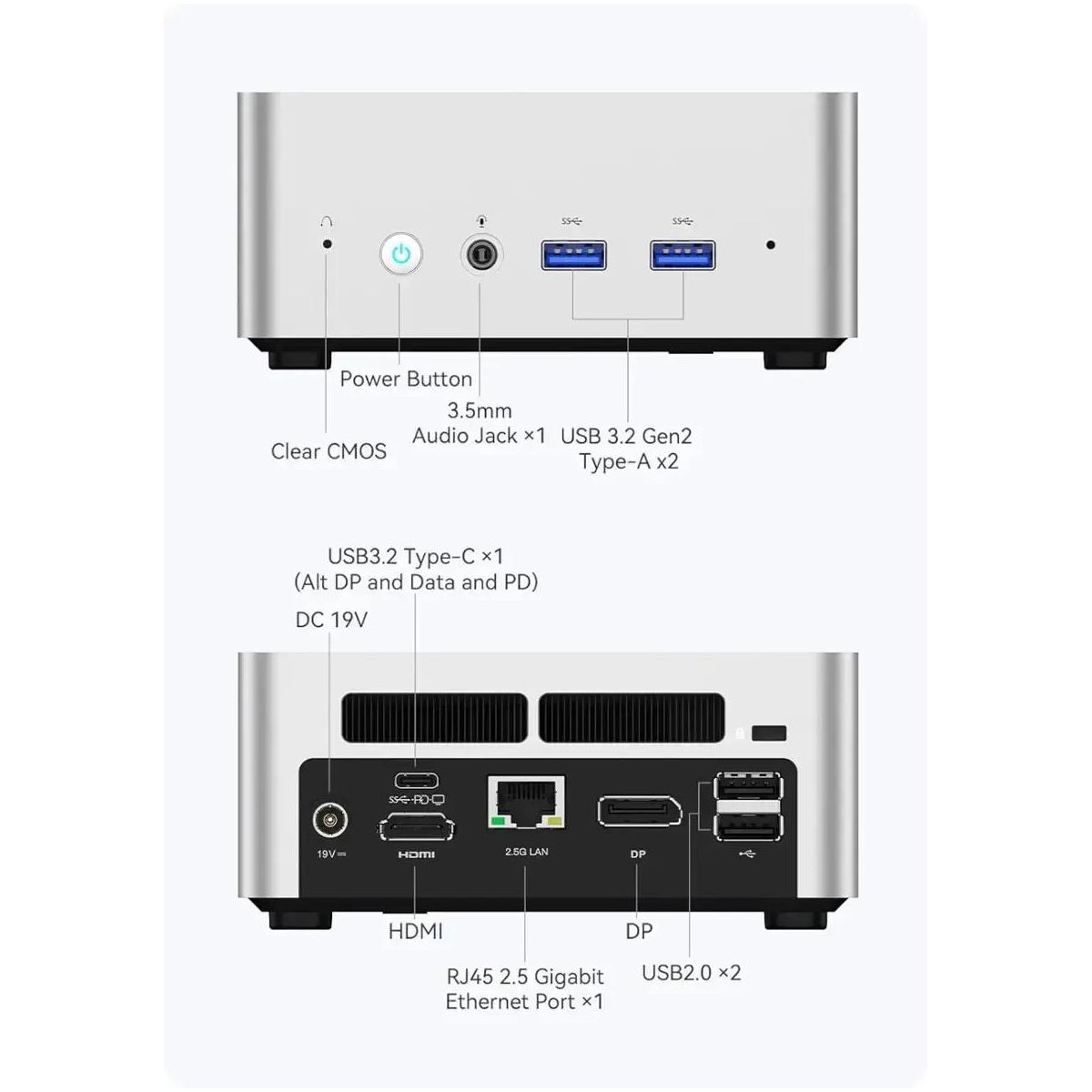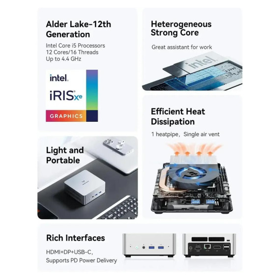 The MINISFORUM UN1250 Mini Desktop PC packs powerful productivity into a compact design, featuring an Intel Core i5-1250P processor (12 cores/16 threads, up to 4.4GHz) with Iris Xe Graphics for smooth multitasking and demanding workloads. It supports triple 4K displays via HDMI, DisplayPort, and USB, along with WiFi 6E, Bluetooth 5.3, and multiple USB ports for seamless connectivity. With 16GB DDR4 RAM, a 512GB PCIe 4.0 SSD (expandable up to 2TB with 2.5" SATA), and AV1 decoding for enhanced visuals, it’s ideal for office, home, and business use. Built for 24/7 reliability with efficient cooling and low power consumption, it also comes with a 2-year warranty for peace of mind.