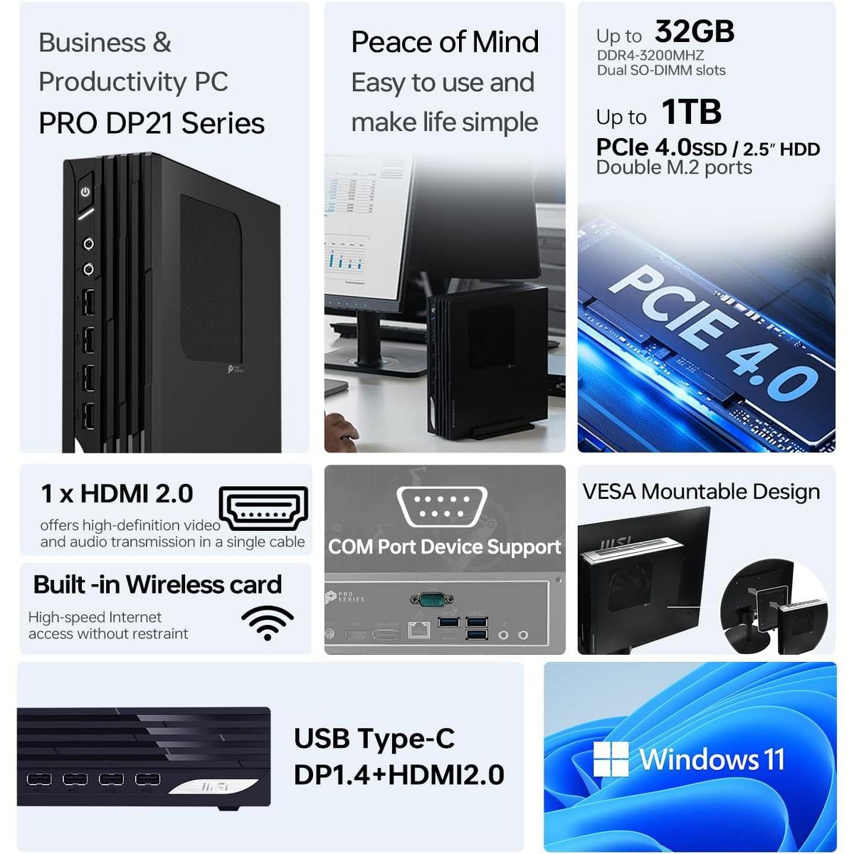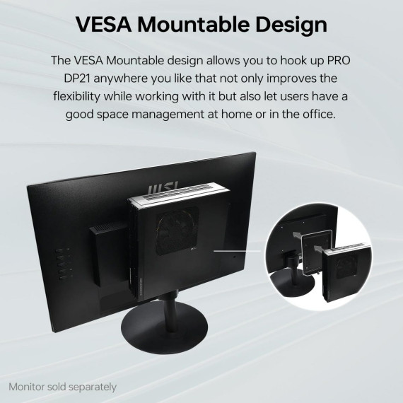 Pre-installed with Windows 11 Home, the MSI PRO DP21 13M supports a streamlined experience for daily work, communication, and content management.