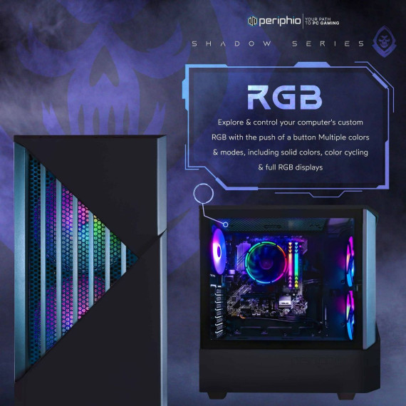 [More About the System] Part of our Fortress Series, the Reaper features a high-quality, bold design, with 2 large 140mm RGB front fans behind a high-quality fascia, supported by an ATX footprint. Its all-black design allows the RGB to stand out even more, and the tempered glass side-panel allows viewers to see inside so you can show off your hardware, just like it was meant to be! Positioned as the perfect entry into PC Gaming, the Periphio Reaper embodies a future-proof design and plenty of PSU overhead for the budding PC enthusiast!