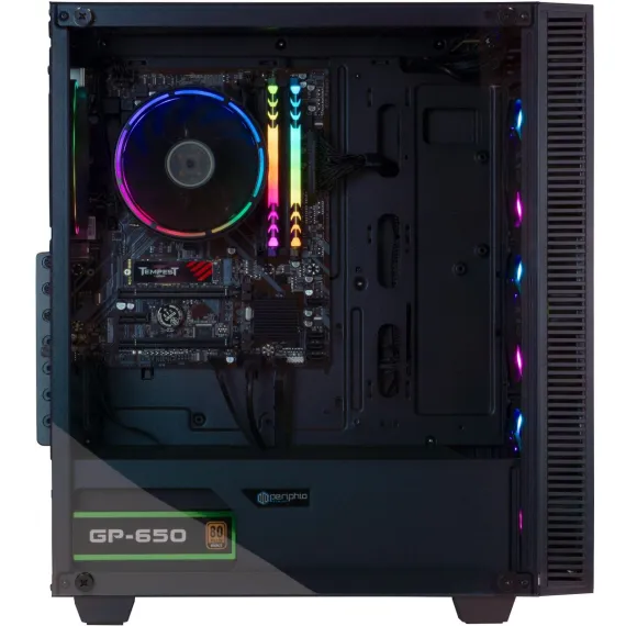 [More About the Gaming Desktop] Part of our Elemental Series, the Terra features a quintessential classic gamer vibe, with 3 bold RGB fans behind a high-quality tempered glass fascia, supported by an ATX footprint. Its all-Black design allows the RGB to stand out even more, and the top-to-bottom tempered glass side-panel allows viewers to see inside, so you can show off your hardware like it was meant to be! Positioned as the perfect entry into PC Gaming, the Periphio Terra embodies a future-proof design and plenty of PSU overhead for the budding PC enthusiast!