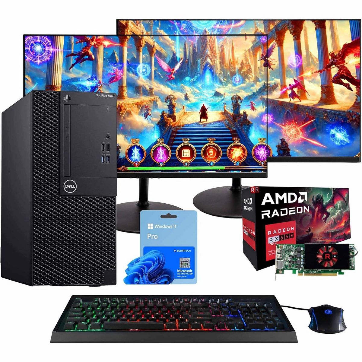 Refurbished Dell Optiplex 3060 Tower Computer-Intel i5-AMD RadeonRX 550-32GB RAM-250GB NVMe+1TB SSD-Gmng Keybd-Windows 11 Pro-Manufacturer Refurbished