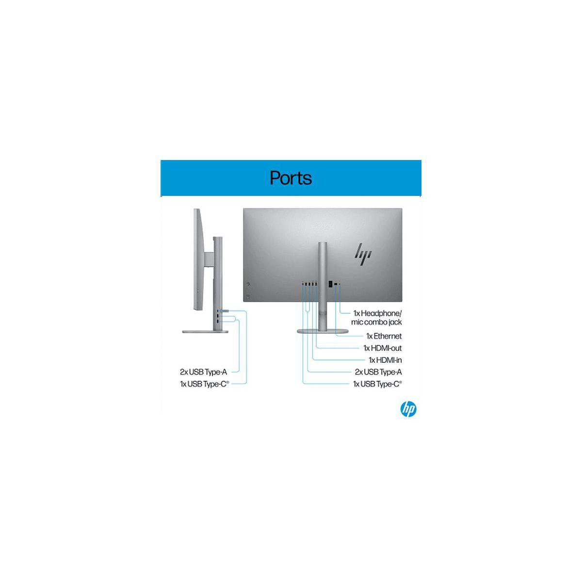 • Ports: 1 USB Type-C 10Gbps signaling rate. 2 USB Type-A 10Gbps signaling rate. 1 USB Type-C 20Gbps signaling rate. 2 USB Type-A 10Gbps signaling rate. 1 headphone/microphone combo. 1 RJ-45(