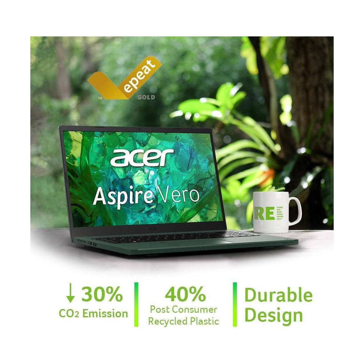 Acer Aspire Vero 15.6" Full HD IPS 13th Gen Intel i5-1335U 8GB LPDDR5 RAM 512GB SSD Backlit OceanGlass Touchpad Recycled Materials - AV15-53P-52PG