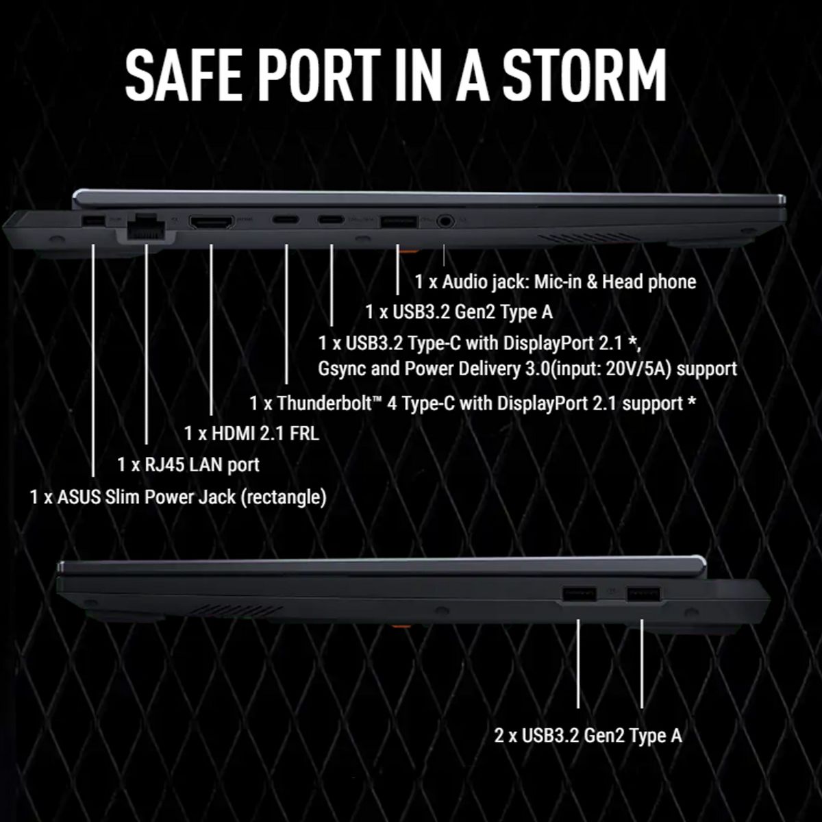 ASUS TUF F16 RTX 5050 Pro Gaming Laptop delivers high-end gaming and multitasking performance with its Intel Core i7-14650HX 16-core processor and NVIDIA GeForce RTX 5050 GPU with 8GB GDDR7 memory. It features 16GB high-bandwidth DDR5 RAM and a fast 1TB PCIe NVMe SSD for responsive workloads and quick load times. The 16-inch FHD+ (1920×1200) IPS-level display offers a 165Hz refresh rate, 100% sRGB color, anti-glare coating, G-Sync, and a MUX Switch with NVIDIA Advanced Optimus for optimized performance and battery efficiency. Connectivity includes Thunderbolt 4, USB-C, multiple USB-A ports, HDMI, RJ-45 LAN, Wi-Fi 6, Bluetooth, a 1080p webcam, and an RGB backlit keyboard. Running Windows 11 Pro, it supports business-grade features such as Windows Hello for Business, Azure AD, and Domain Join, making it suitable for both gaming and productivity environments.