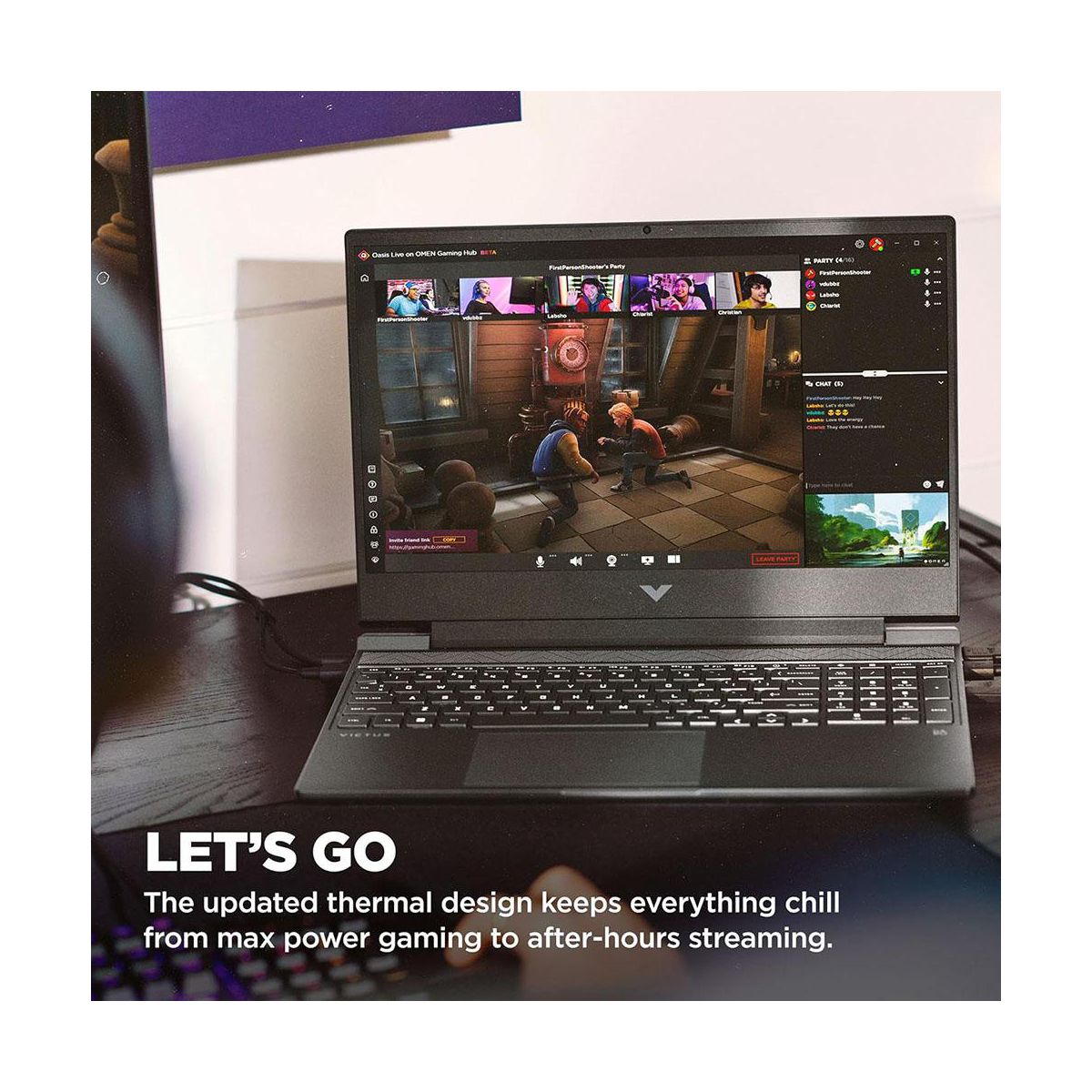 The HP Victus Laptop is made for peak PC gaming. This sleek machine touts an Intel Core Processor and a modern graphics card. This laptop's design is just as impressive as its hardware with plenty of color options, updated thermals and an HD camera with Temporal Noise Reduction.