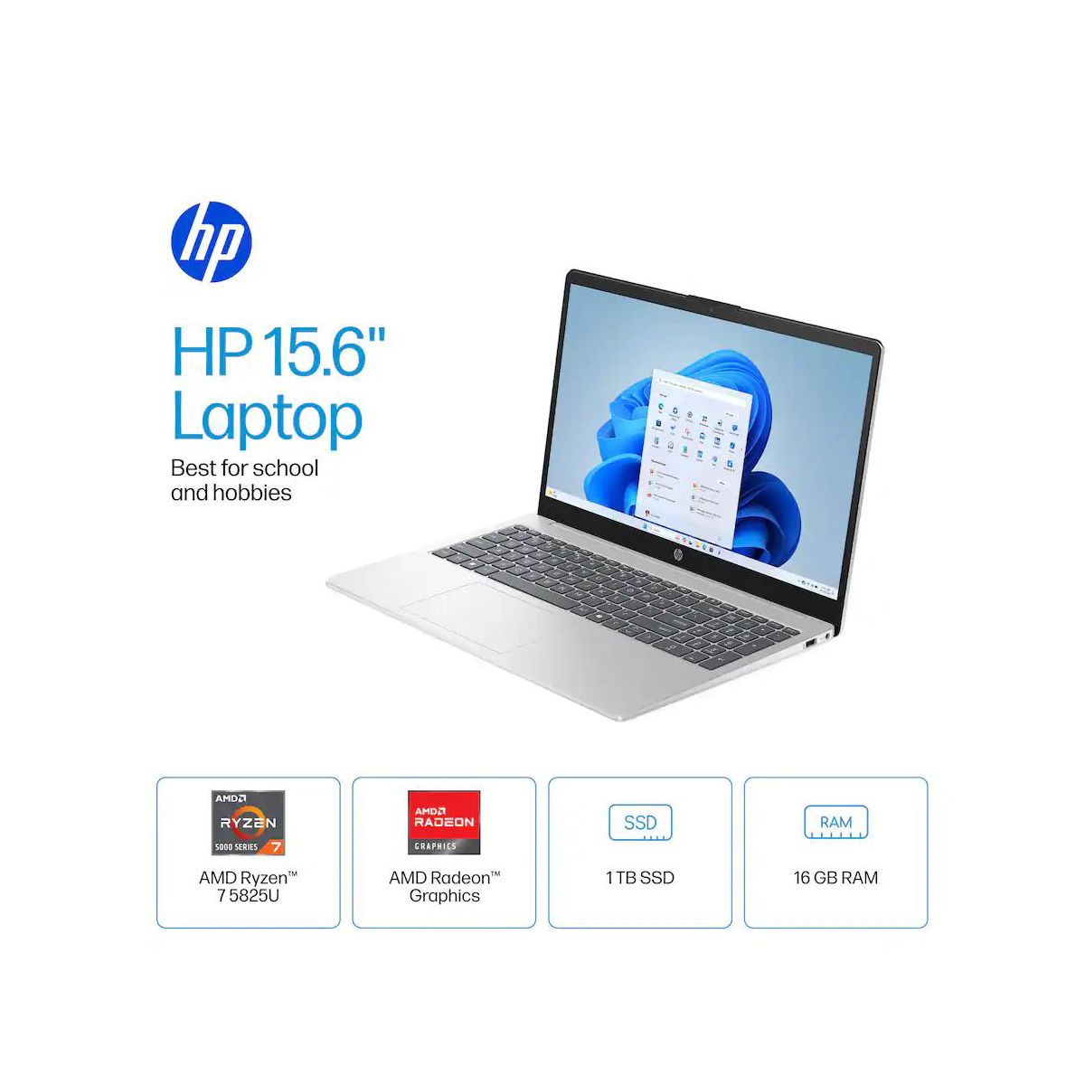 HP 15.6" Full HD Laptop, AMD Ryzen 7 5825U, 16GB RAM, 1TB SSD, Windows 11 Home
