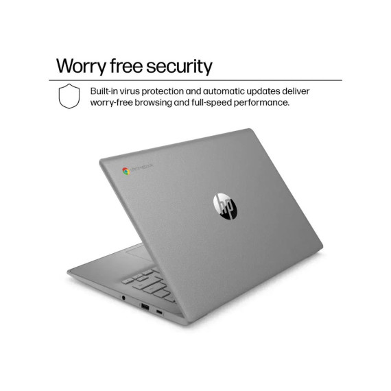 Do less and accomplish more. The HP Chromebook 14” brings a reliable Intel processor, 14-inch high definition screen, dual speakers, and dependable Wi-Fi technology, so you can easily knock out any assignment, listen to music, or stream your favorite videos and games..