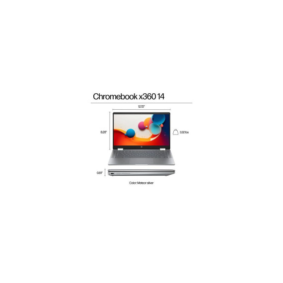Overview - The HP Chromebook x360 14" lets you power your day with the performance of up to an Intel® processor paired with the ChromeOS and built-in virus protection. Enjoy long lasting battery life and a fast boot up to keep you going throughout the day. Plus the HP Chromebook is thoughtfully designed with sustainable materials. Features Effortless productivity anywhere - Get everything done with up to an Intel® processor, built-in Google apps, long lasting battery life and plenty of storage. Turn up the entertainment, chat or collaborate - Turn down the noise and turn up your entertainment needs with the high quality camera and large 14" display. Designed with you in mind - Designed with you in mind, with flexible x360 design, built-in protection and smart security features. Built for a better tomorrow - HP Chromebook x360 is designed with ocean-bound plastic and post-consumer recycled plastics. Software included - Google Play Store; Google Assistant Disclaimers - Testing conducted by HP using Google Chrome OS power LoadTest. Battery life will vary and the maximum capacity of the battery will naturally decrease with time and usage. - Multi-core is designed to improve performance of certain software products. Not all customers or software applications will necessarily benefit from use of this technology. Performance and clock frequency will vary depending on application workload and your hardware and software configurations. Intel’s numbering, branding and/or naming is not a measurement of higher performance. - Recharges your battery up to 50% within 45 minutes when the system is off using “shut down” command, using HP adapter provided with the notebook or recommended power adapter disclosed in specifications (see http://store.hp.com). After charging has reached 50% capacity, charging speed will return to normal speed. Charging time may vary +/-10% due to System tolerance. Available on select HP products. - Full high-definition (FHD) content required to view FHD images. - Percent of active plus nonactive viewing area to active viewing area plus border. Measure with lid vertical to the desk. - Laptops manufactured with recycled ocean-bound plastic material in product speaker enclosures, recycled aluminum material in product cover and post-consumer recycled plastic in keycaps. Percentage of material contained in each component varies by product. - The boot up speed may vary depending on the device. According to tests on various devices from the Chromebook portfolio, 10 seconds is the average boot up speed. - Camera resolution refers to the image sensor active pixels. The actual image capture pixels and aspect ratio depend on the app selected. - Multi-core is designed to improve performance of certain software products. Not all customers or software applications will necessarily benefit from use of this technology. Performance and clock frequency will vary depending on application workload and your hardware and software configurations. Intel’s numbering is not a measurement of higher performance. Intel and Core are trademarks of Intel Corporation in the U.S. and other countries. - High-definition (HD) content required to view HD images. Graphics output may be limited based on the maximum resolution of the display. 4K content required to view full 4K images. - Full high-definition (FHD) content is required to view FHD images. - All performance specifications represent the typical specifications provided by HP's component manufacturers; actual performance may vary either higher or lower. - ENERGY STAR and the ENERGY STAR logo are registered trademarks of the U.S. Environmental Protection Agency. - Testing conducted by HP using Google Chrome OS power_LoadTest.Battery life will vary and the maximum capacity of the battery will naturally decrease with time and usage