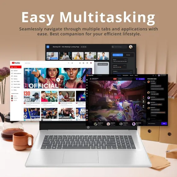 HP Essential 17-cn3403nr Laptop, 17.3" HD+ Touch, i3-N305, UHD Graphics, 16GB RAM, 128GB eMMC + 1TB SSD, Wi-Fi 6, Win 11 Pro, Silver