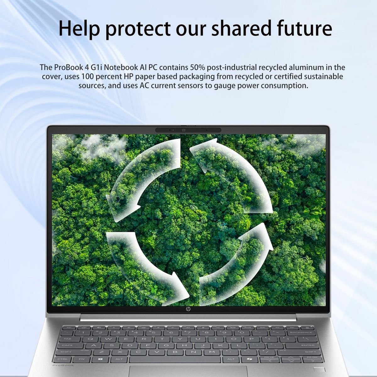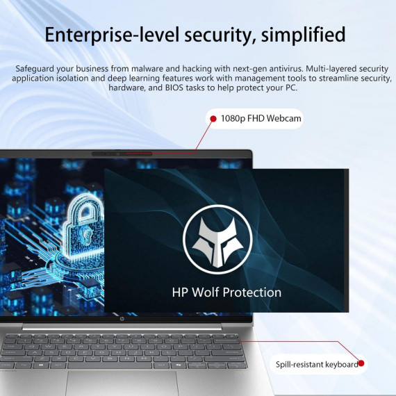 HP ProBook 4 G1i is a 14" business laptop built for productivity and security, featuring a crisp FHD+ (1920×1200) IPS anti-glare display with 300 nits brightness for comfortable viewing. Powered by a 10-core Intel Core 5-120U processor with Turbo Boost up to 5.0GHz, it delivers fast performance for office workloads, multitasking, and online collaboration. With 16GB DDR5 RAM and a 1TB PCIe NVMe SSD, it offers smooth application switching, quick boot times, and ample file storage. Connectivity includes Wi-Fi 6E, Bluetooth, HDMI 2.1, Ethernet, dual USB-A, dual USB-C, an audio jack, and a 1080p FHD webcam for high-quality conferencing. Windows 11 Pro adds enterprise-grade management tools for IT environments such as Group Policy, kiosk mode, and Azure AD support. HP Wolf Security further protects against malware and hacking through hardware-level safeguards and isolation technologies, making this ProBook a reliable choice for modern business users.