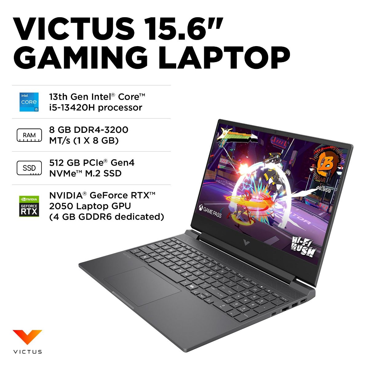 HP VICTUS 15-fa2500nr 15.6" Gaming Laptop i5-13420H 8GB 512GB SSD RTX 2050