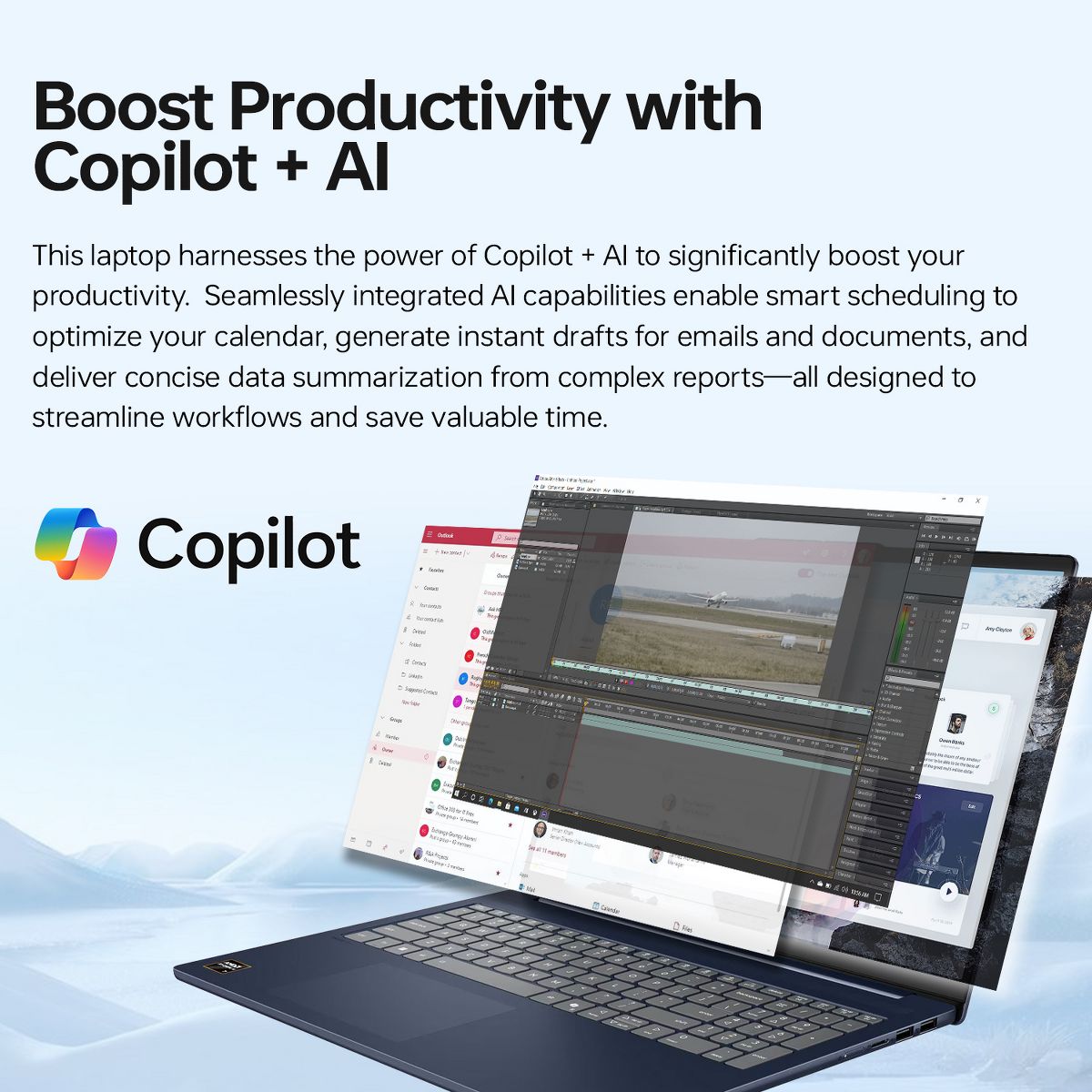 Lenovo 2025 IdeaPad Slim 5 Next Gen AI Copilot Laptop is a powerful, future-ready productivity device built for intensive multitasking and AI-enhanced workflows. Driven by the AMD Ryzen 7 350 processor with up to 5.0GHz boost speeds and 8 cores/16 threads, it delivers performance that exceeds Intel Ultra 7 155U-class CPUs, while integrated Radeon Graphics handle everyday visuals smoothly. With a massive 32GB of DDR5 RAM, the system effortlessly manages demanding applications and heavy multitasking, and the spacious 2TB SSD ensures lightning-fast boot times, quick file access, and ample storage for large projects. The expansive 16-inch FHD+ (1920×1200) IPS touchscreen provides sharp visuals, extra vertical workspace, and intuitive touch interaction, enhanced by a 300-nit anti-glare finish for comfortable all-day use. Connectivity is modern and versatile, featuring Wi-Fi 7, dual USB-A ports (one Always On), dual USB-C ports with Power Delivery and DisplayPort support, HDMI 2.1, a microSD card reader, Bluetooth, and an integrated webcam. A backlit keyboard improves usability in low-light environments, while Windows 11 Home with Copilot integration delivers AI-powered assistance for smarter scheduling, faster workflows, and enhanced everyday productivity.
