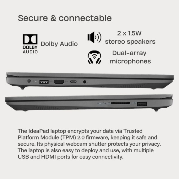 Lenovo IdeaPad 1 15IJL7 Entry Laptop delivers reliable everyday performance with a 15.6″ FHD (1920×1080) anti-glare display and Dolby Audio speakers for clear visuals and sound. Powered by an Intel Pentium Silver N6000 processor and Intel UHD Graphics, it handles web browsing, schoolwork, streaming, and light gaming smoothly. With 12GB DDR4 memory plus 128GB eMMC and 256GB PCIe SSD storage, it offers fast boot times and ample file capacity. The slim, lightweight design makes it easy to carry, while the HD 720p webcam with Privacy Shutter ensures secure video calls. Connectivity includes Wi-Fi 6, Bluetooth 5.2, USB-A, USB-C (data), HDMI, audio jack, card reader, and more. Running Windows 11 Home in Cloud Grey, the IdeaPad 1 is ideal for students and casual users seeking a budget-friendly, user-friendly laptop for everyday tasks.