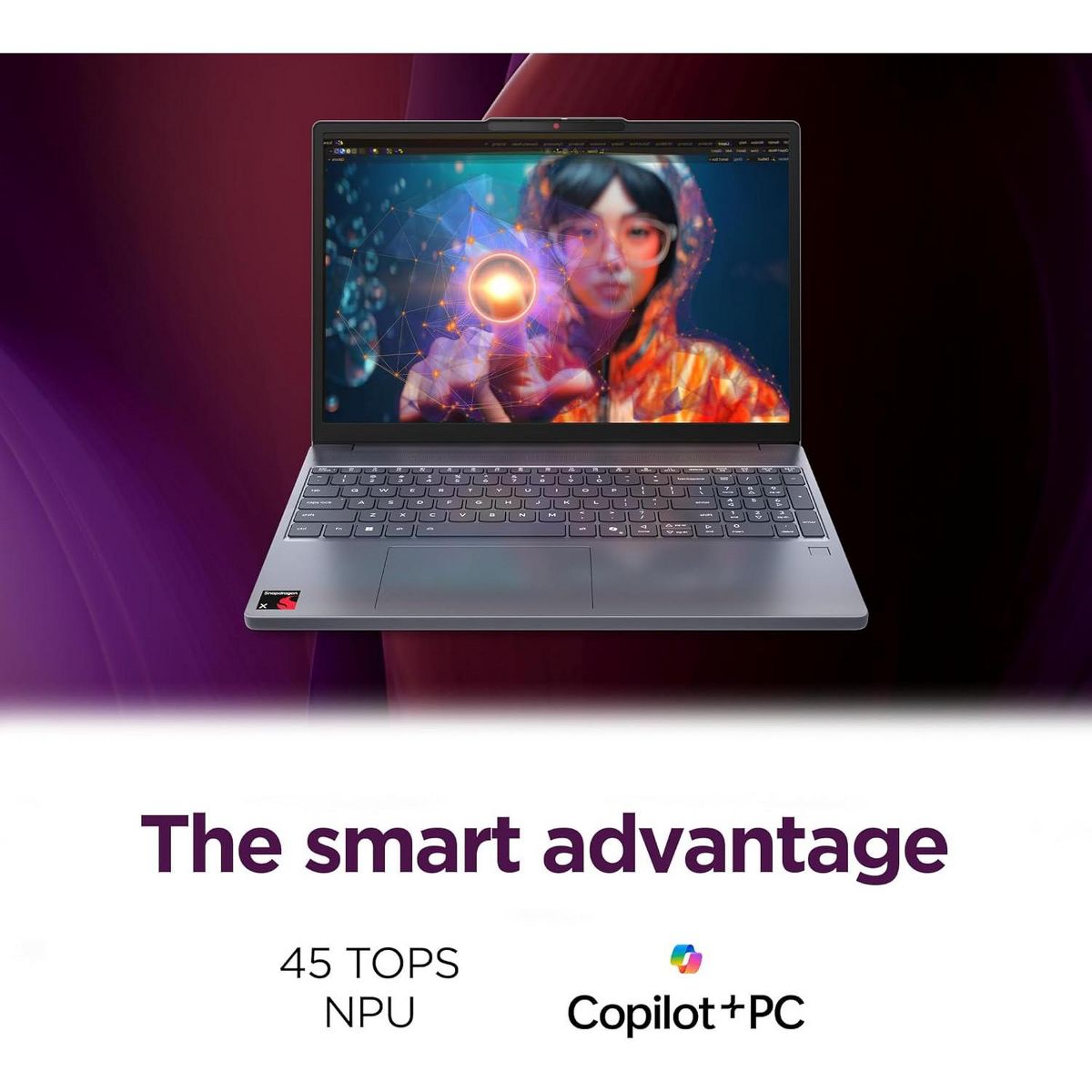 Smarter computing meets bold design and durability. As a Copilot+ PC, the IdeaPad Slim 3x features up to 45 TOPS NPU for AI, multitasking and smooth video calls. Its 15.3" 16:10 display delivers elevated visuals, while the rugged chassis ensures reliability. With all-day battery life and Rapid Charge, to get two hours of power in 15 minutes..