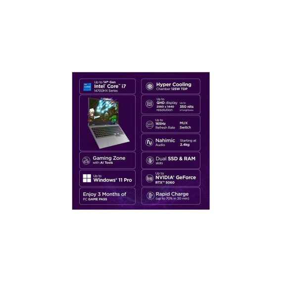 The Lenovo LOQ 15IRX10 is a powerful gaming laptop designed to deliver exceptional performance for gamers and content creators. Featuring a 15.6" Full HD IPS display with a smooth 144Hz refresh rate, this laptop provides tear-free gaming visuals and responsive gameplay perfect for competitive gaming and immersive entertainment experiences. Powered by the Intel Core i5-13450HX processor with 10 cores and speeds up to 4.6GHz, this high-performance CPU handles demanding games and multitasking with ease. Paired with the NVIDIA GeForce RTX 3050 graphics card featuring 8GB GDDR6 memory, this system delivers realistic graphics with ray tracing capabilities and AI-powered DLSS for improved performance in modern games. The 16GB of DDR5 RAM ensures smooth multitasking across gaming and applications, while the 512GB PCIe SSD provides fast storage with quick game load times. The backlit keyboard with customizable RGB lighting allows for personalized gaming setups and comfortable gameplay in any lighting condition. Wi-Fi 6 ensures stable online gaming connections, while the inclusion of an RJ-45 port provides wired networking for maximum stability during competitive gaming sessions. Running Windows 11 Home, the LOQ 15IRX10 offers excellent gaming performance with features like DirectX 12 Ultimate support and Auto HDR. The Luna Grey chassis features a modern gaming design with strategic ventilation for optimal cooling. The advanced thermal system with dual fans and multiple heat pipes maintains optimal performance during extended gaming sessions. Additional features include HDMI 2.1 output for high-refresh-rate external displays, multiple USB ports including USB-C, and an audio combo jack with Nahimic audio for immersive sound. This gaming laptop balances performance, features, and value for gamers seeking capable gaming performance without compromise