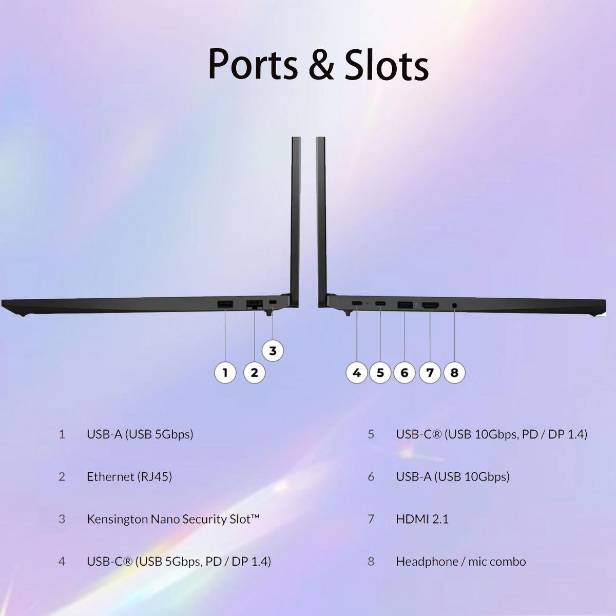 Lenovo ThinkPad E16 Gen 2 Business Laptop combines power, speed, and productivity in a sleek design. Powered by the AMD Ryzen 5 7535U processor (6 cores, 12 threads, up to 4.55GHz) and enhanced with business-class AI performance, it handles multitasking, content creation, and professional workloads effortlessly. With 32GB of high-bandwidth DDR5 RAM and a 1TB PCIe NVMe M.2 SSD, it delivers lightning-fast boot times, rapid file transfers, and smooth operation across multiple apps and browser tabs. The 16" WUXGA (1920x1200) IPS touchscreen provides sharp, vibrant visuals with anti-glare technology, 16:10 aspect ratio, 300 nits brightness, and TÜV Low Blue Light certification for comfortable extended viewing. Connectivity is versatile with two USB-A ports, two USB-C ports, HDMI, RJ-45 Ethernet, and a headphone/mic combo jack, while Wi-Fi 6E and Bluetooth ensure stable, high-speed wireless performance. Additional features include a backlit keyboard, fingerprint reader, and HD 720p webcam for secure and productive use. Running Windows 11 Pro, the ThinkPad E16 Gen 2 offers enterprise-grade security, intuitive multitasking, and advanced collaboration tools, making it an ideal business laptop for professionals seeking performance, flexibility, and reliability.
