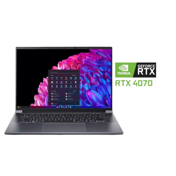 The Acer Swift X 14 SFX14-72G-72VP is a manufacturer-refurbished notebook that combines premium OLED technology with dedicated graphics capabilities. This Iron-finished laptop features a 14.5-inch OLED display with WQXGA+ resolution (2880 x 1800) and a productivity-focused 16:10 aspect ratio, running at a smooth 120 Hz refresh rate and delivering bright 400 Nit output. The screen uses CineCrystal glare technology to enhance color vibrancy and contrast, making it ideal for both creative work and content consumption. At its core, the device is powered by an Intel Core Ultra 7 155H processor running at 1.40 GHz, paired with an NVIDIA GeForce RTX 4050 graphics card featuring 6GB of dedicated memory to deliver robust performance for both creative tasks and gaming. The system comes equipped with 16GB of LPDDR5X memory and a generous 1TB storage capacity, providing extensive resources for multitasking and substantial local storage. Wireless connectivity is handled by the modern IEEE 802.11ax standard, ensuring fast and reliable internet connections for online activities. The device offers impressive mobility with up to 12 hours of battery life, making it ideal for all-day use without frequent charging. Running Windows 11 Home, this Swift X 14 provides a full-featured computing experience with access to a vast ecosystem of applications and services. The combination of the high-resolution OLED display, dedicated graphics capabilities, and substantial specifications makes this notebook particularly well-suited for creative professionals and power users who require exceptional display quality and reliable performance in a portable format. This is a Manufacturer Refurbished product.