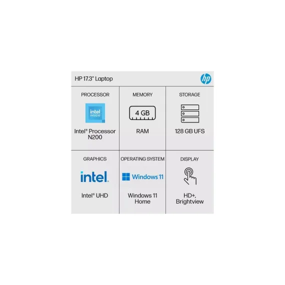 Refurbished HP 17 cn3002tg: 17.3", Intel N200, 4GB RAM, 128GB UFS (Manufacturer Refurbished)