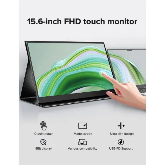 15.6'' Portable Monitor Touchscreen, FHD IPS Touch Screen HDMI USB C External Monitors for Laptop Phone Computer Xbox Switch