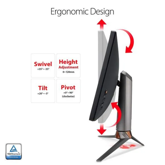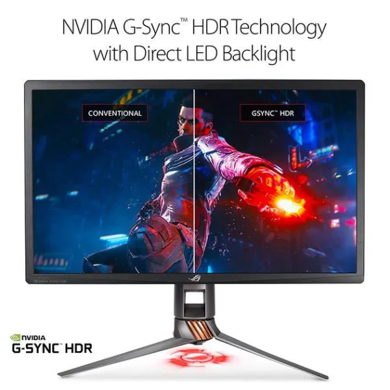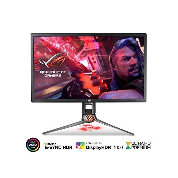 Make sure this fits by entering your model number. 27” 4K UHD (3840 x 2160) 144Hz HDR gaming monitor with integrated aura Sync and ambient light sensor embraces ROG standards and design Nvidia G-SYNC HDR for lifelike contrast and color, display HDR 1000 and UHD premium Certified with peak 1000 nits brightness and 384 local dimming zones Quantum dot IPS display with 97% DCI-P3 (99% Adobe RGB) color gamut for realistic colors and smoother gradation Marathon ready with game-grade ergonomics such as tilt, swivel, pivot and height adjustments and ASUS Eye Care technology to reduce eyestrain via Blue light filter and flicker-free backlighting Flexible connectivity options with DisplayPort 1.4, HDMI 2.0 and USB 3.0 hub