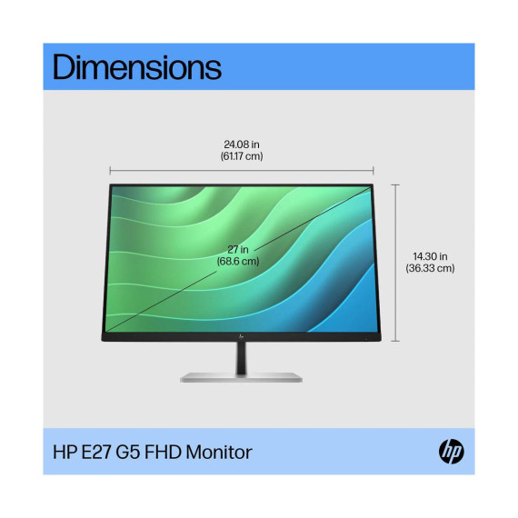 The HP E27 G5 27" Full HD Monitor delivers crisp clarity and impressive color accuracy in a modern, ultra-thin design perfect for work, study, and everyday use. Its IPS display provides wide viewing angles and vibrant visuals, while the adjustable stand helps you find the perfect position for all-day comfort. With HDMI, DisplayPort, and USB-A connectivity, this monitor makes it easy to set up a productive workspace. ENERGY STAR and EPEAT certifications ensure it meets high environmental standards, while its 75Hz refresh rate and 5ms response time keep visuals smooth and responsive.