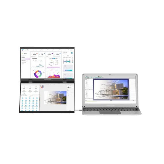 Elevate your productivity and collaboration with the Packard Bell Dual Portable Monitor. This sleek, lightweight setup features two 15.6" Full HD IPS displays, delivering stunning 1920x1080 resolution and a 1000:1 contrast ratio for vibrant, crystal-clear visuals. Its innovative fold-over design allows the screens to face opposite directions, enabling two people to view content simultaneously—ideal for presentations, teamwork, or shared entertainment. Weighing just 3.12 lb and only 1.0" thick, it’s perfect for professionals, students, and travelers. With USB Type-C and HDMI connectivity, it seamlessly integrates with Windows and Mac devices, effortlessly extending your laptop or phone workspace. Enjoy versatile display options with Ultra mode for a single expansive screen, Duplicate mode for mirrored displays perfect for collaborative tasks, or Windows Extend mode for two independent screens to enhance multitasking. Powered by an included adapter or directly from your device, this monitor offers plug-and-play convenience. Whether working remotely, gaming, or collaborating face-to-face, the Packard Bell Dual Portable Monitor is your ultimate companion for a dynamic, high-quality viewing experience.