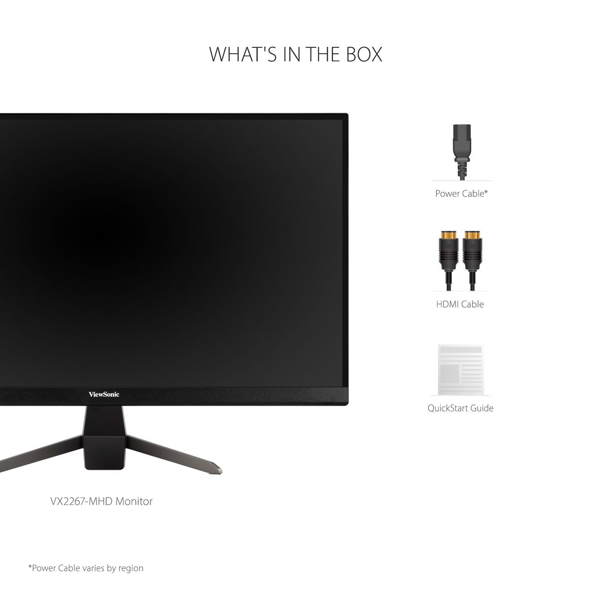 The ViewSonic VX2267-mhd is a 22” (21.5” viewable) Full HD price-performance monitor built for gaming and entertainment. Equipped with AMD FreeSync, this monitor’s variable refresh rate capabilities virtually eliminate screen tearing and stuttering for fluid game play during fast-paced action scenes. An ultra-fast 1ms response time (MPRT) provides smooth screen performance free from blurring or ghosting. For a game winning competitive edge, a Game Mode hot key optimizes gameplay for FPS, RTS and MOBA. Flexible connectivity options such as DisplayPort, HDMI, and VGA allow you to connect to your dedicated graphics card and gaming console. The VX2267-mhd features all the perks needed to dominate all your gaming and entertainment quests. ***** Manufacturer Refurbished Product. Please note that this is a pre-owned item. - Manufacturer Refurbished