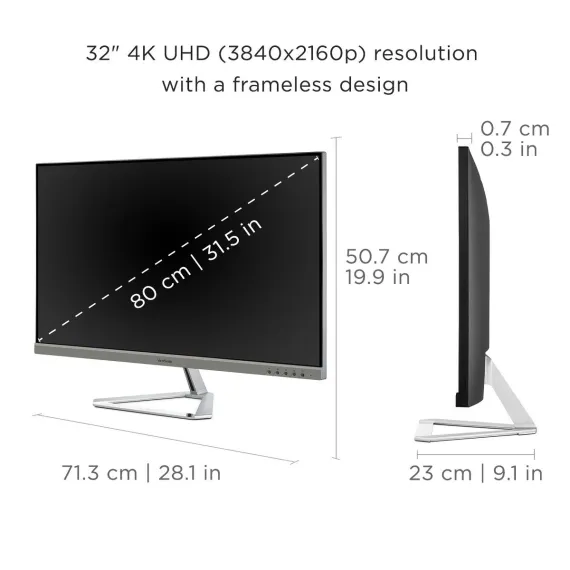 Refurbished-The ViewSonic VX3276-4K-MHD is a sleek 32 (31 5 Inch Viewable) 4K UHD monitor with a modern and minimalist style perfect for home use With Super clear MVA panel technology and 80M 1 Dynamic contrast Ratio This monitor offers best-in-class screen performance with ultra-wide viewing angles A sleek edge-to-edge frameless design combined with stunning 3840 x 2560 resolution provides incredibly sharp and detailed visuals while HDR10 content support delivers a high Dynamic Range of vivid color and contrast for incredible screen performance Versatile HDMI DisplayPort and Mini DisplayPort inputs offer flexible connectivity options for both computing and gaming while an exclusive view mode feature provides intuitive presets for optimized screen performance in different applications. This monitor is a solid long-term investment that combines style and high performance for the home ***** Manufacturer Refurbished Product. Please note that this is a pre-owned item. - Manufacturer Refurbished